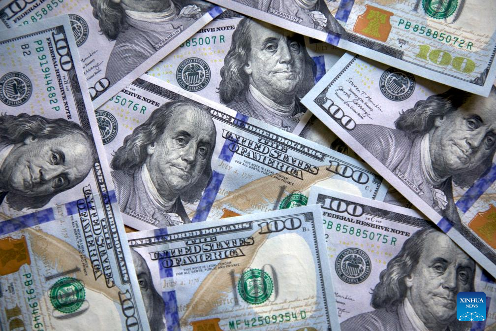 Imagen del 14 de abril de 2025 de billetes de cien dólares estadounidenses, en la ciudad de Buenos Aires, capital de Argentina. Argentina inició el lunes la primera jornada financiera sin control de cambios, tras la decisión del Gobierno de levantar el llamado "cepo" cambiario, en el marco de su estrategia para normalizar el mercado y atraer inversiones. (Xinhua/Martín Zabala)