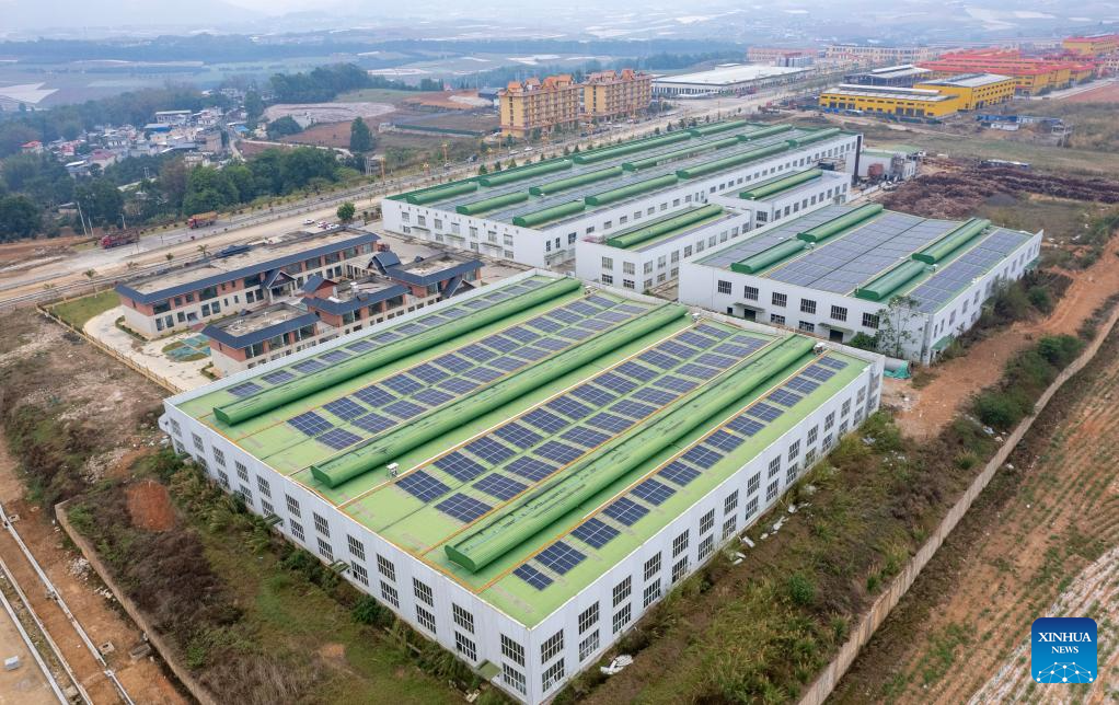 LINCANG, 16 abril, 2025 (Xinhua) -- Vista aérea tomada con un dron el 15 de abril de 2025 de una empresa de nuevos materiales que aprovecha el bagazo de caña de azúcar para producir vajillas degradables y ecológicas, en la ciudad de Lincang, en la provincia de Yunnan, en el suroeste de China. Basándose en sus 400.000 mu (26.666,67 hectáreas) de campos de plantación de caña de azúcar, el distrito autónomo dai y va de Gengma de la ciudad de Lincang se ha centrado en el desarrollo de vajillas degradables y ecológicas con bagazo, el residuo generado durante el prensado del azúcar. Estos productos han ganado popularidad en países extranjeros como Alemania e Italia. Actualmente, el valor de producción anual de sus vajillas degradables se acerca a los 100 millones de yuanes (aproximadamente 13,65 millones de dólares estadounidenses), lo que supone un gran impulso para la economía y el empleo locales. (Xinhua/Chen Xinbo)