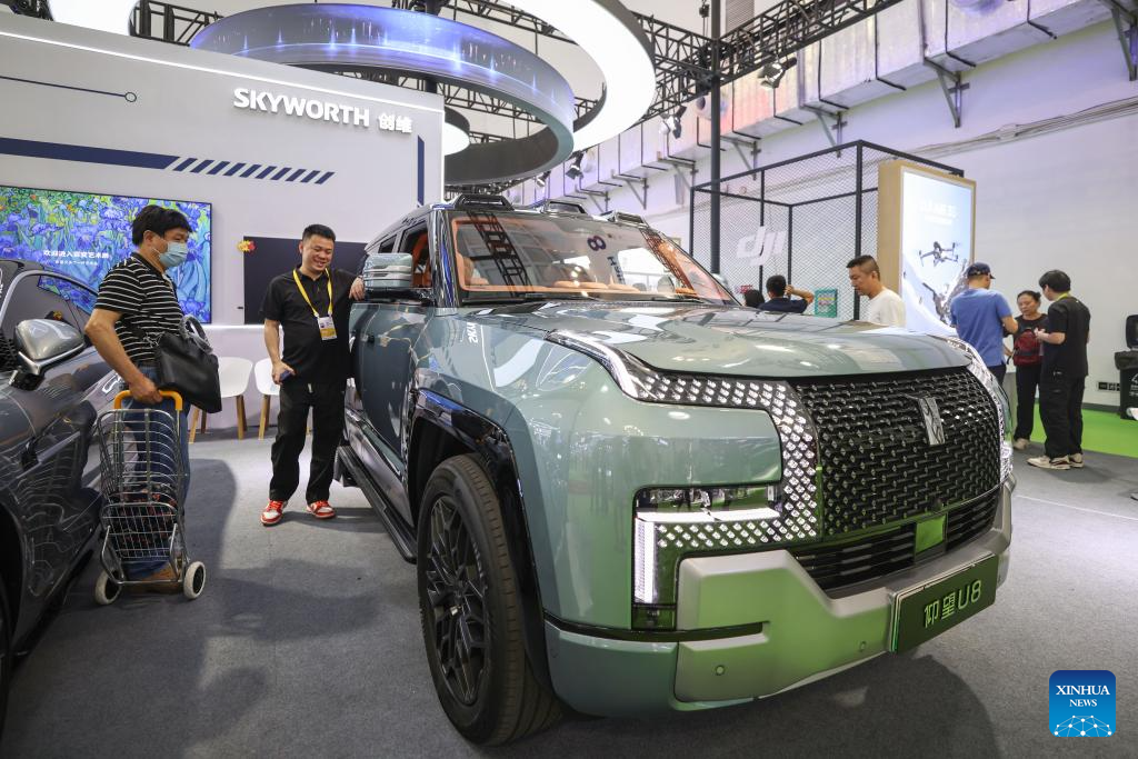 HAIKOU, 16 abril, 2025 (Xinhua) -- Visitantes observan un vehículo de nueva energía en la V Exposición Internacional de Productos de Consumo de China (CICPE, por sus siglas en inglés), en Haikou, en la provincia de Hainan, en el sur de China, el 16 de abril de 2025. Desde habilidades de patrimonio cultural inmaterial hasta productos tecnológicos de moda, las marcas chinas mostraron su encanto en la CICPE en curso en Haikou, atrayendo la atención de muchos visitantes. (Xinhua/Zhang Liyun)