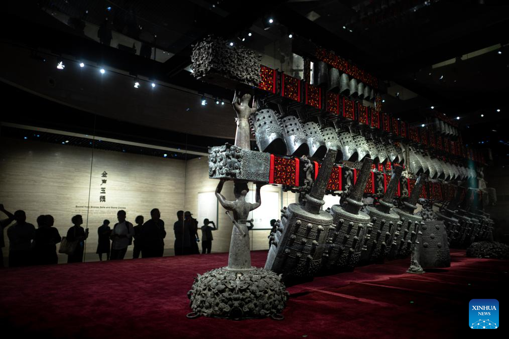 BEIJING, 17 abril, 2025 (Xinhua) -- El Bianzhong del Marqués Yi de Zeng es visto en el Museo Provincial de Hubei, en Wuhan, en la provincia de Hubei, en el centro de China, el 17 de abril de 2025. Tres colecciones de patrimonio documental presentadas por China han sido inscritas en el Registro de la Memoria del Mundo de la UNESCO, anunció el jueves la Organización de las Naciones Unidas para la Educación, la Ciencia y la Cultura. Entre las 74 nuevas entradas agregadas, China contribuyó con dos presentaciones individuales: el Bianzhong del Marqués Yi de Zeng y las Estelas del Templo Shaolin, así como una presentación conjunta con Sri Lanka: la Inscripción Trilingüe. (Xinhua/Xiao Yijiu)