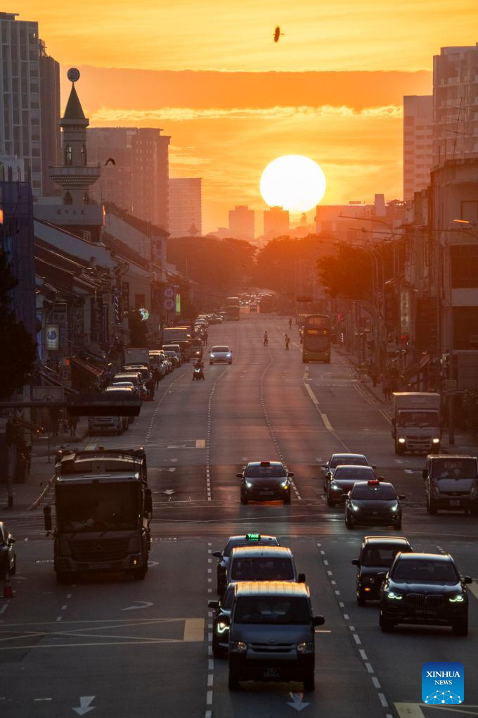 SINGAPUR, 18 abril, 2025 (Xinhua) -- Imagen del 18 de abril de 2025 de una vista de la ciudad al amanecer, en Singapur. (Xinhua/Then Chih Wey)