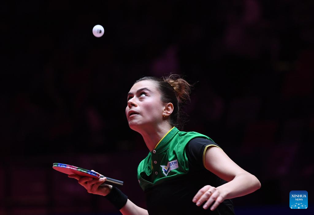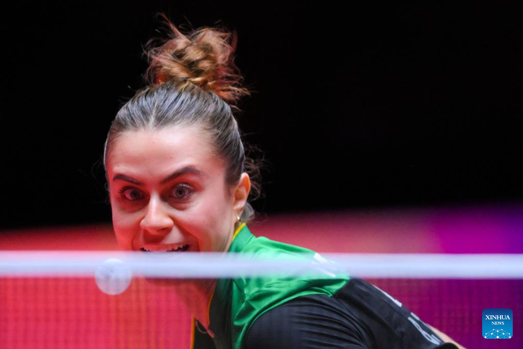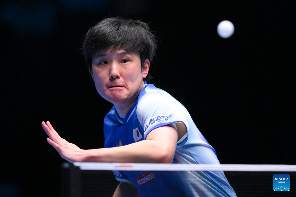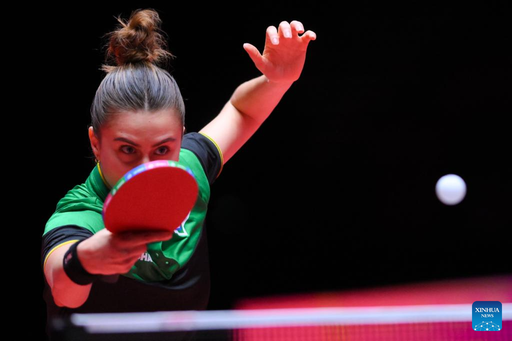 MACAO, 18 abril, 2025 (Xinhua) -- Bruna Takahashi, de Brasil, devuelve la pelota durante el partido de cuartos de final de individuales femeninos entre Chen Xingtong, de China, y Bruna Takahashi, de Brasil, en la Copa del Mundo Masculina y Femenina de la ITTF 2025, en Macao, China, el 18 de abril de 2025. (Xinhua/Cheong Kam Ka)