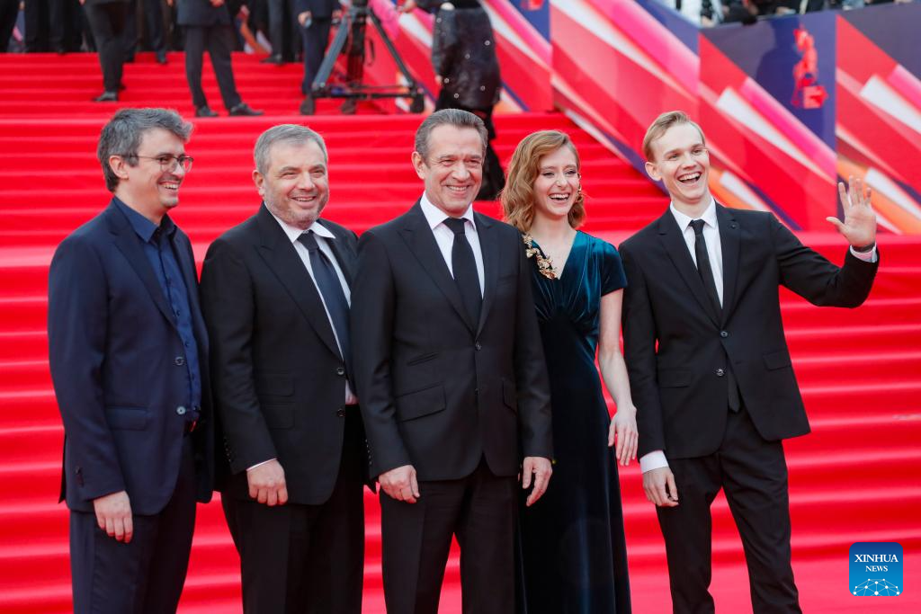 MOSCU, 18 abril, 2025 (Xinhua) -- Imagen del 17 de abril de 2025 de invitados posando para las fotografías mientras llegan para asistir a la ceremonia de apertura del 47° Festival Internacional de Cine de Moscú, en Moscú, Rusia. El 47° Festival Internacional de Cine de Moscú se inauguró el jueves en la capital rusa, con un programa cinematográfico dedicado al grupo BRICS. (Xinhua/Alexander Zemlianichenko Jr)