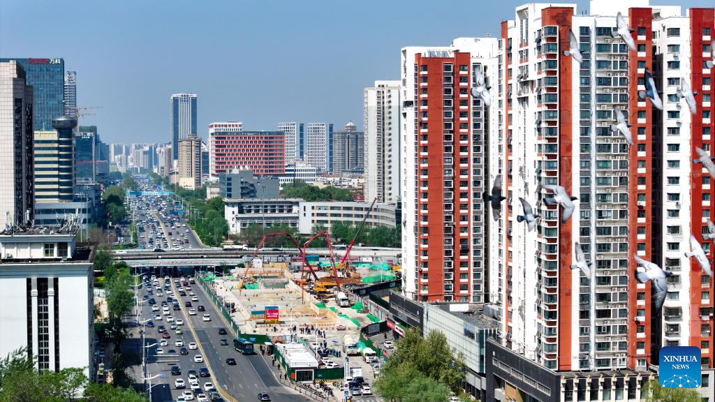 JINAN, 19 abril, 2025 (Xinhua) -- Vista aérea tomada con un dron el 19 de abril de 2025 del recubrimiento de la estructura principal de la Estación de Paso Elevado Bayi de la Línea 4 del Metro de Jinan (Fase I), en Jinan, en la provincia de Shandong, en el este de China. Con el exitoso recubrimiento de la estructura principal de la Estación de Paso Elevado Bayi, la construcción de la estructura principal de la Línea 4 del Metro de Jinan (Fase I) ha sido completada. (Xinhua/Guo Xulei)