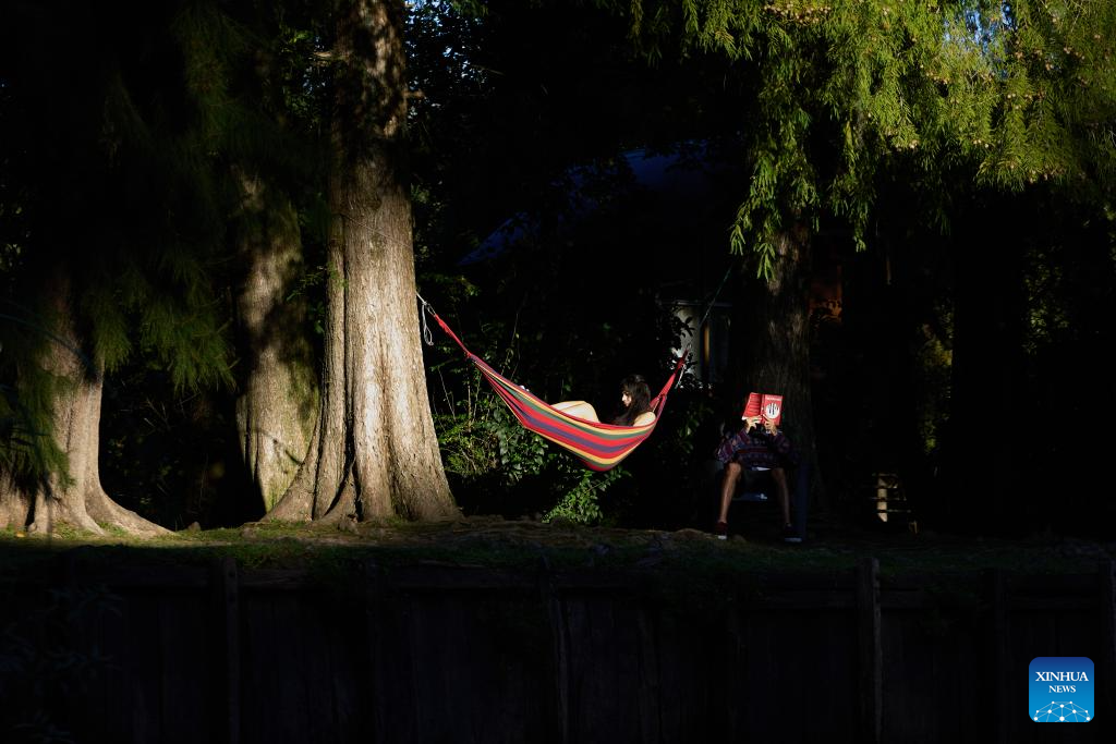 TIGRE, 19 abril, 2025 (Xinhua) -- Imagen del 18 de abril de 2025 de personas relajándose junto a un río, en Tigre, Argentina. (Xinhua/Meng Dingbo)
