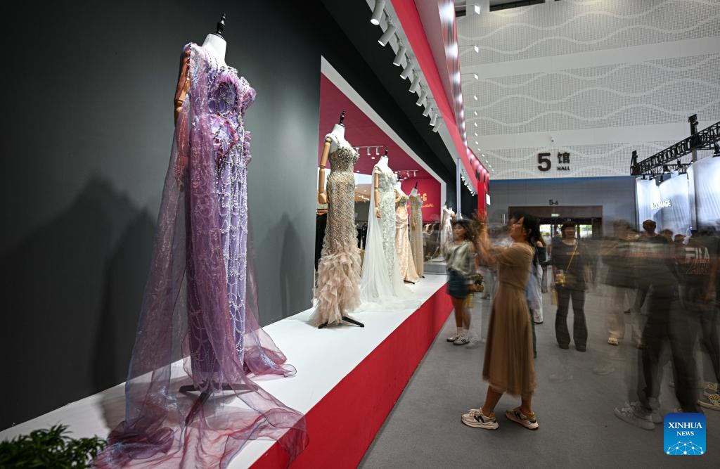 HAIKOU, 19 abril, 2025 (Xinhua) -- Imagen del 18 de abril de 2025 de diseños de moda exhibidos durante la V Exposición Internacional de Productos de Consumo de China (CICPE, por sus siglas en inglés), en Haikou, en la provincia de Hainan, en el sur de China. Con el tema "OASIS", el desfile de moda de la CICPE 2025 presentó 22 pasarelas y eventos con diversas marcas de diseñadores chinos y extranjeros del 12 al 18 de abril. Su objetivo es apoyar a jóvenes diseñadores de excelencia de todo el mundo y ayudar a que sus marcas se globalicen. (Xinhua/Pu Xiaoxu)