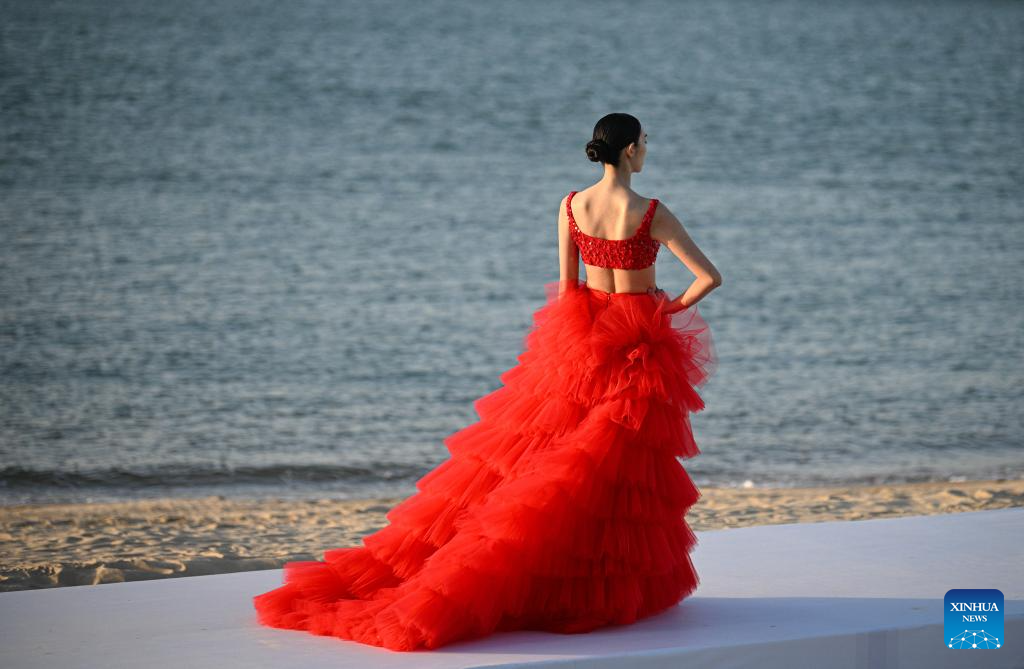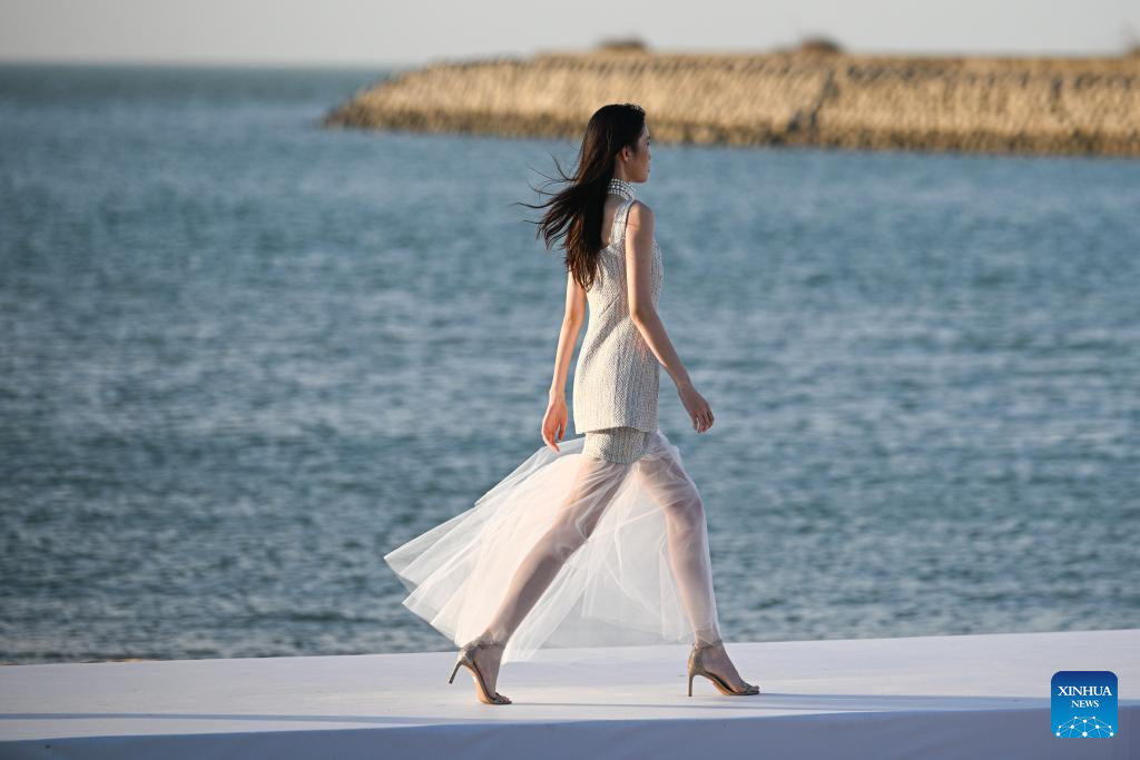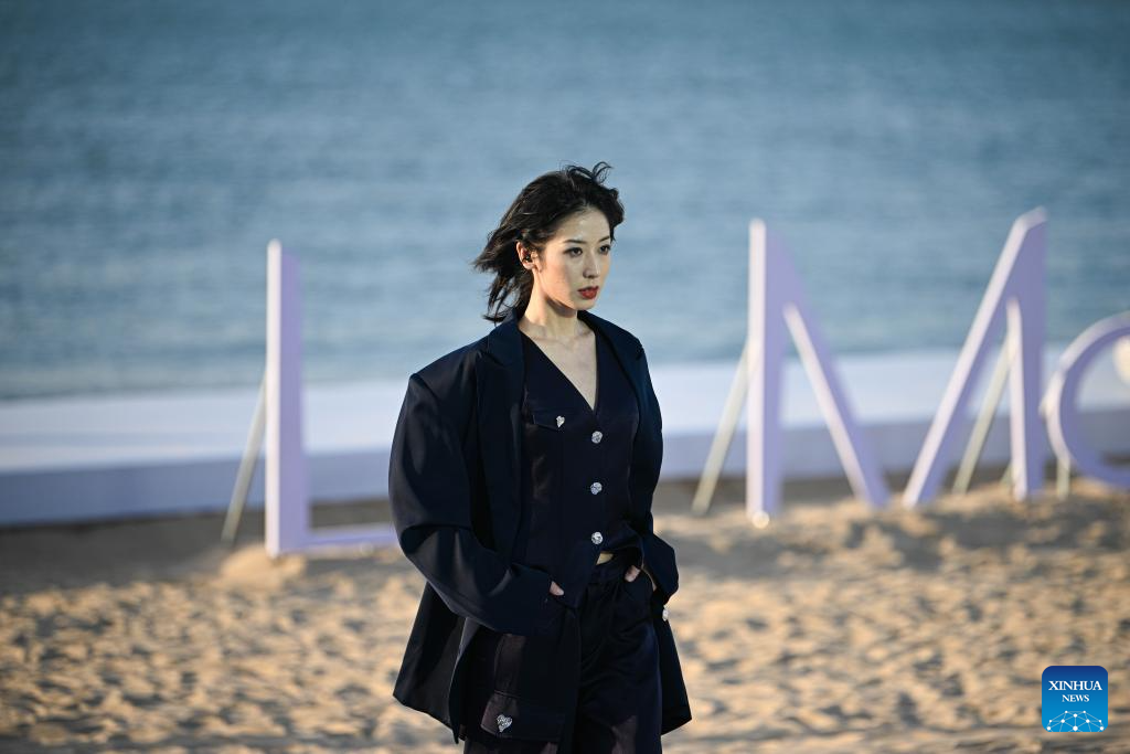 HAIKOU, 19 abril, 2025 (Xinhua) -- Imagen del 16 de abril de 2025 de una modelo presentando un diseño de moda de "La Mofiel" durante un desfile junto al mar de la V Exposición Internacional de Productos de Consumo de China (CICPE, por sus siglas en inglés), en Haikou, en la provincia de Hainan, en el sur de China. Con el tema "OASIS", el desfile de moda de la CICPE 2025 presentó 22 pasarelas y eventos con diversas marcas de diseñadores chinos y extranjeros del 12 al 18 de abril. Su objetivo es apoyar a jóvenes diseñadores de excelencia de todo el mundo y ayudar a que sus marcas se globalicen. (Xinhua/Pu Xiaoxu)