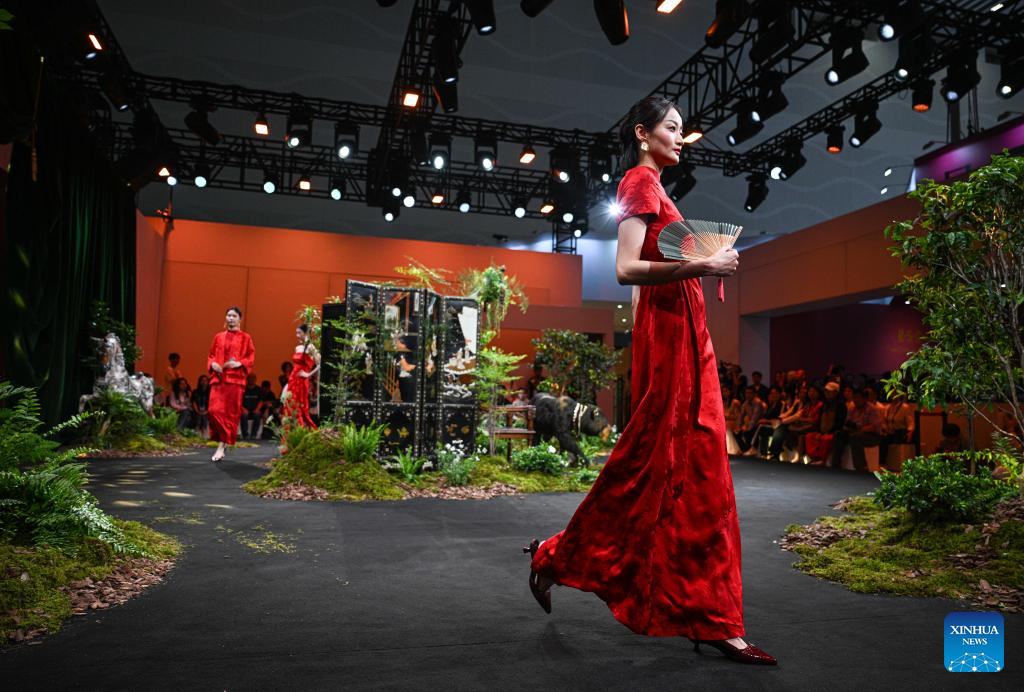 HAIKOU, 19 abril, 2025 (Xinhua) -- Imagen del 15 de abril de 2025 de modelos presentando diseños de la marca vietnamita "MEL ESSENTIALS" durante la V Exposición Internacional de Productos de Consumo de China (CICPE, por sus siglas en inglés), en Haikou, en la provincia de Hainan, en el sur de China. Con el tema "OASIS", el desfile de moda de la CICPE 2025 presentó 22 pasarelas y eventos con diversas marcas de diseñadores chinos y extranjeros del 12 al 18 de abril. Su objetivo es apoyar a jóvenes diseñadores de excelencia de todo el mundo y ayudar a que sus marcas se globalicen. (Xinhua/Pu Xiaoxu)
