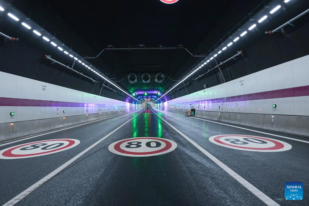BEIJING, 20 abril, 2025 (Xinhua) -- Imagen del 20 de abril de 2025 de un túnel escudo a lo largo de la sexta carretera de circunvalación este, en Beijing, capital de China. El proyecto de renovación de la sexta carretera de circunvalación este de Beijing se abrió al tráfico el domingo después de su finalización completa. La sección renovada tiene una longitud aproximada de 16,3 kilómetros, incluyendo un túnel escudo de 7,4 kilómetros. El proyecto contribuye a mejorar el transporte por autopista en la zona central del distrito de Tongzhou, en el subcentro de Beijing. (Xinhua/China Railway 14th Bureau Group Co., Ltd.)