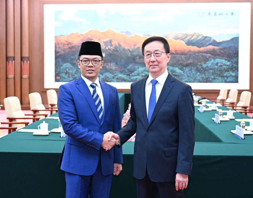 BEIJING, 21 abr (Xinhua) -- El vicepresidente chino, Han Zheng, se reunió hoy lunes en Beijing con el ministro de Relaciones Exteriores de Indonesia, Sugiono.