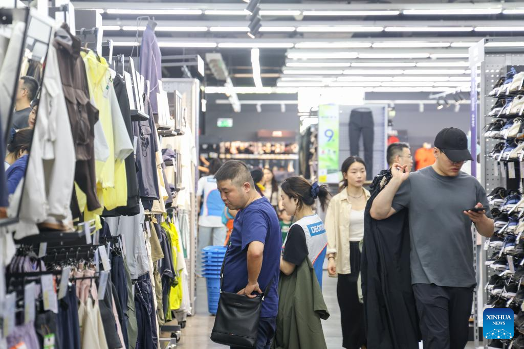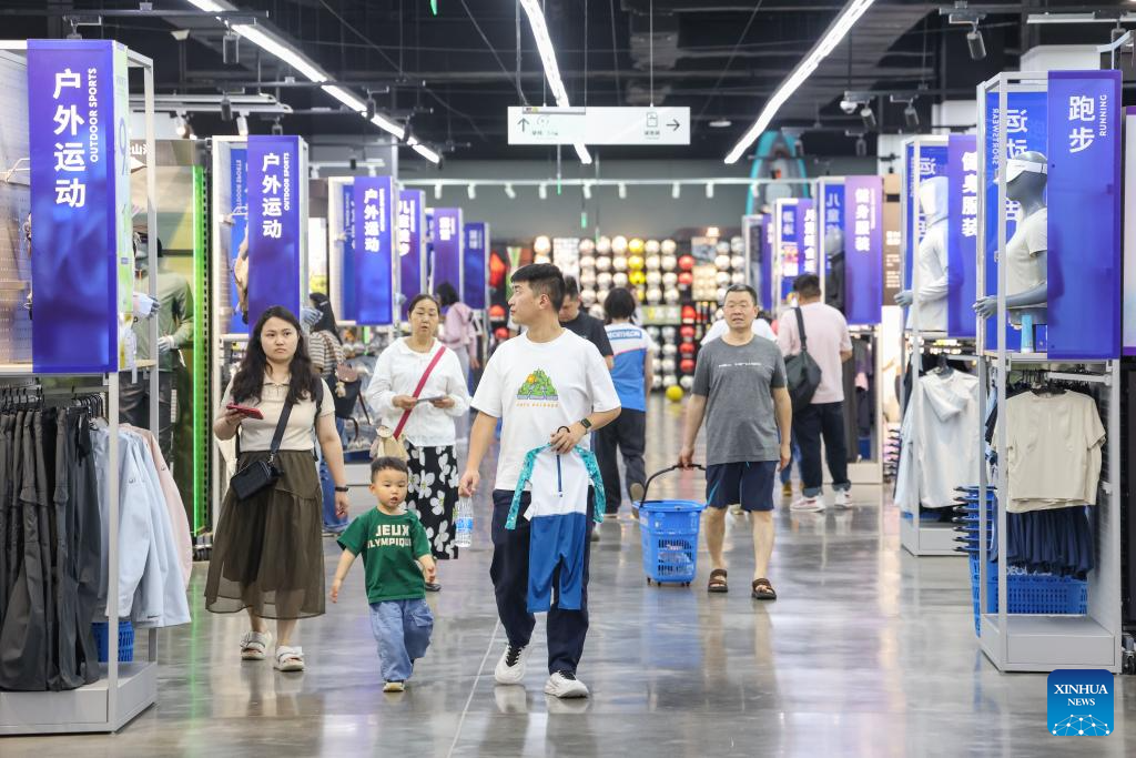 CHONGQING, 20 abril, 2025 (Xinhua) -- Imagen del 19 de abril de 2025 de personas seleccionando mercancías en una tienda Decathlon en la calle Nanbin, en el distrito de Nan'an, en Chongging, en el suroeste de China. Ansiosos por liberarse de los confines del invierno, los chinos están adoptando actividades al aire libre, mientras la primavera ofrece oportunidades infinitas para mantenerse en forma y disfrutar de la belleza de la naturaleza. Con el aumento de las temperaturas, los maratones, el ciclismo, la pesca y la acampada han transformado parques y distritos comerciales en vibrantes centros de actividad, impulsando una dinámica ola de consumo. (Xinhua)