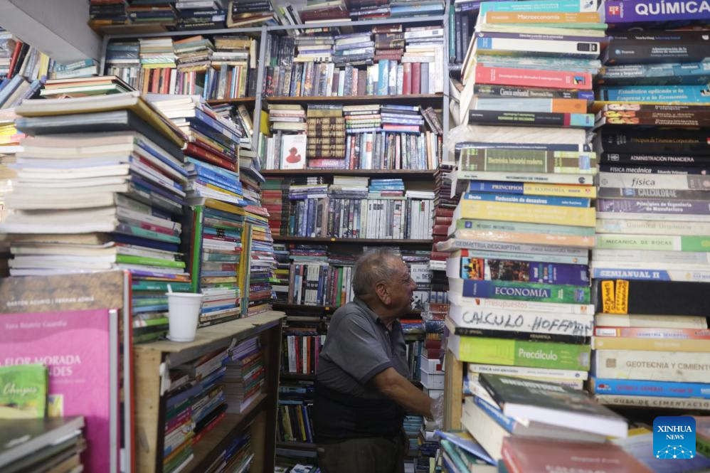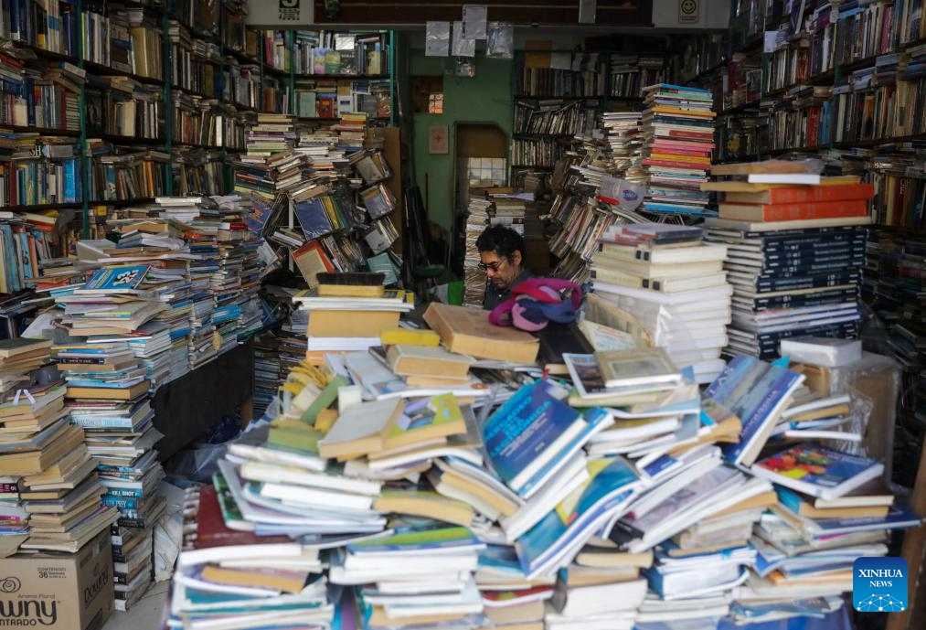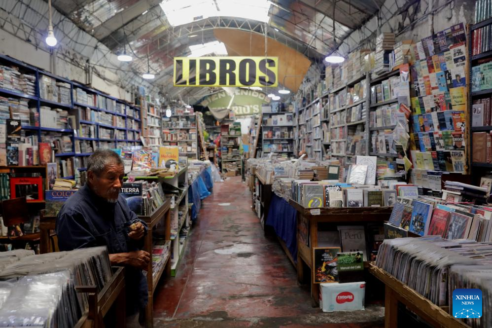 LIMA, 22 abril, 2025 (Xinhua) -- Un vendedor espera por clientes en una librería de segunda mano previo a la celebración del Día Internacional del Libro, en el centro de Lima, Perú, el 22 de abril de 2025. (Xinhua/Mariana Bazo)
