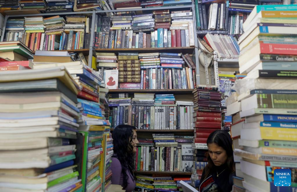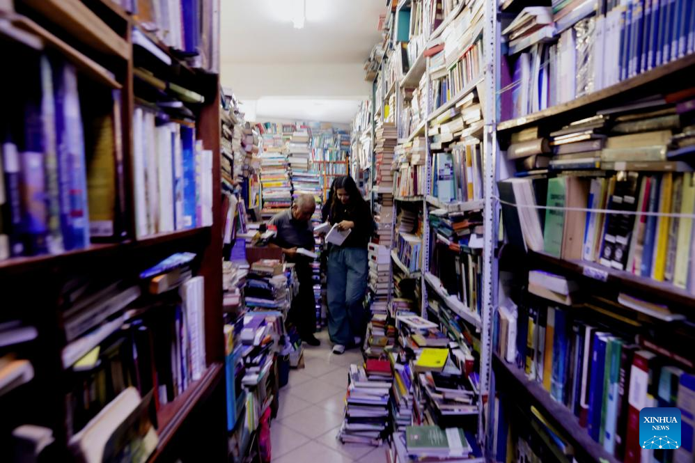 LIMA, 22 abril, 2025 (Xinhua) -- Personas visitan una librería de segunda mano previo a la celebración del Día Internacional del Libro, en el centro de Lima, Perú, el 22 de abril de 2025. (Xinhua/Mariana Bazo)