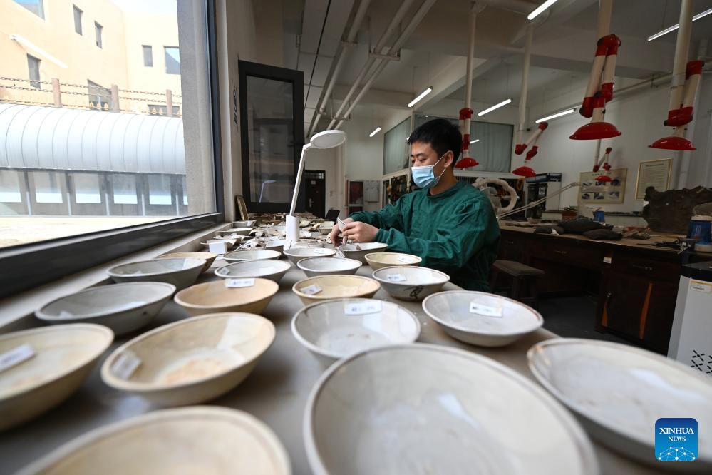DATONG, 22 abril, 2025 (Xinhua) -- Imagen del 15 de abril de 2025 de Li Pengfei, un empleado del instituto de investigación de las Grutas de Yungang, restaurando porcelana de las grutas en el instituto, en Datong, en la provincia de Shanxi, en el norte de China. Las Grutas de Yungang se construyeron durante la Dinastía Wei del Norte (386-534). Desde 2003, este sitio declarado Patrimonio de la Humanidad por la UNESCO ha iniciado la digitalización de sus 45 cuevas principales y más de 59.000 estatuas de piedra amenazadas por la erosión. Se ha utilizado tecnología de vanguardia para registrar los detalles de las obras de arte budistas, lo que ha allanado el camino para su reconstrucción digital en 3D. (Xinhua/Zhan Yan)