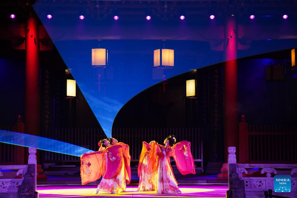 SHEXIAN, 22 abril, 2025 (Xinhua) -- Imagen de 10 de enero de 2024 de actores realizando una presentación, en el poblado antiguo de Huizhou, en el distrito de Shexian de la ciudad de Huangshan, en la provincia de Anhui, en el este de China. Ubicado en el cruce de las montañas Huangshan y el río Xin'an, el distrito de Shexian, en la provincia de Anhui, en el este de China, ha conservado la esencia de la cultura y la arquitectura de estilo hui. (Xinhua/Du Yu)