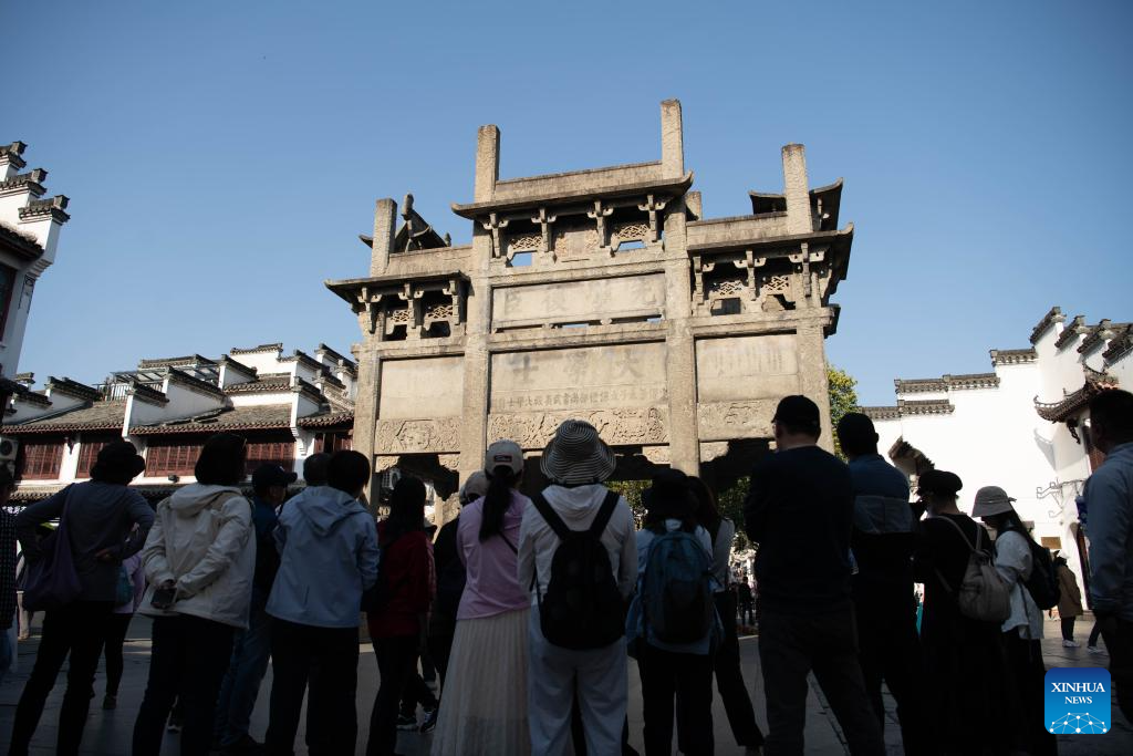 SHEXIAN, 22 abril, 2025 (Xinhua) -- Imagen del 25 de marzo de 2025 de turistas visitando el poblado antiguo de Huizhou, en el distrito de Shexian de la ciudad de Huangshan, en la provincia de Anhui, en el este de China. Ubicado en el cruce de las montañas Huangshan y el río Xin'an, el distrito de Shexian, en la provincia de Anhui, en el este de China, ha conservado la esencia de la cultura y la arquitectura de estilo hui. (Xinhua/Zhang Duan)