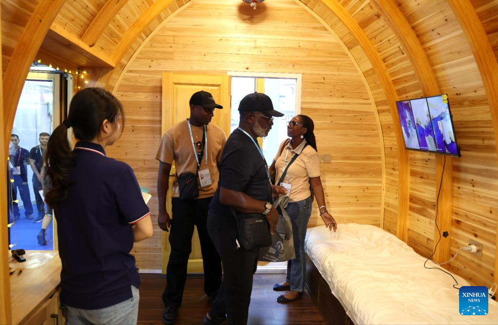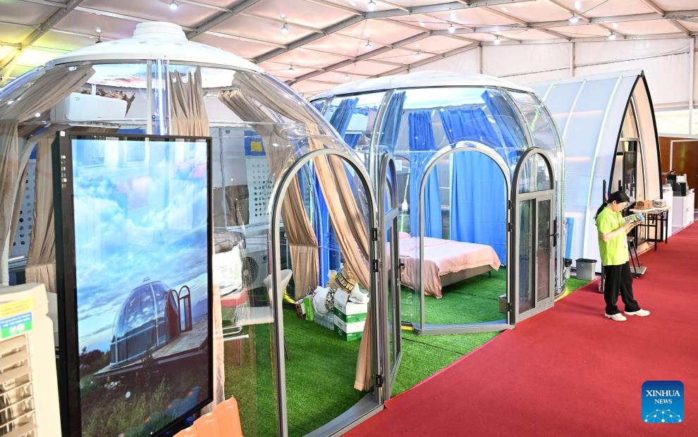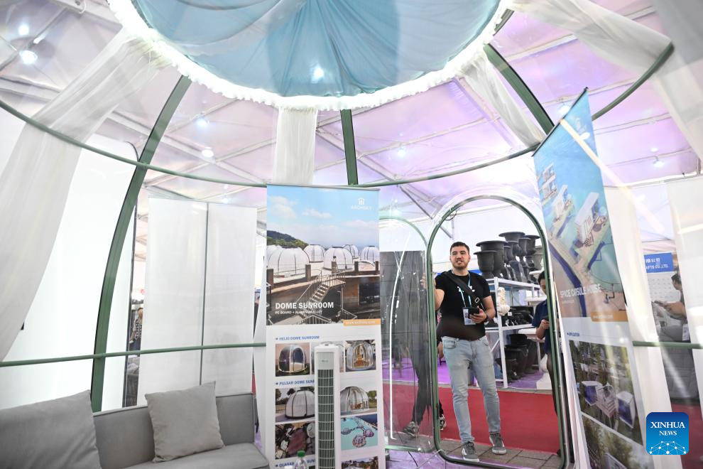 GUANGZHOU, 23 abril, 2025 (Xinhua) -- Imagen del 23 de abril de 2025 de un área que presenta productos integrados para vivienda en la 137ª edición de la Feria de Cantón, en Guangzhou, en la provincia de Guangdong, en el sur de China. La segunda fase de la 137ª edición de la Feria de Cantón con temática en muebles para el hogar de calidad se inauguró el miércoles. En el evento se instaló por primera vez un área con productos integrados para vivienda para mostrar casas móviles, casas modulares, casas ampliables y otros productos relacionados. (Xinhua/Deng Hua)