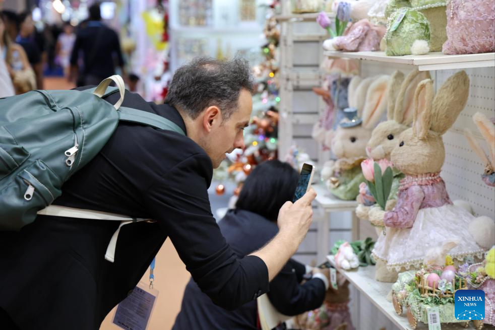 GUANGZHOU, 23 abril, 2025 (Xinhua) -- Un área de regalos y premios de la segunda fase de la 137ª Feria de Importación y Exportación de China es vista en Guangzhou, en la provincia de Guangdong, en el sur de China, el 23 de abril de 2025. La segunda fase de la 137ª Feria de Importación y Exportación de China, también conocida como la Feria de Cantón, centrada en muebles para el hogar de calidad, se inauguró el miércoles con más de 10.000 empresas expositoras. (Xinhua/Deng Hua)
