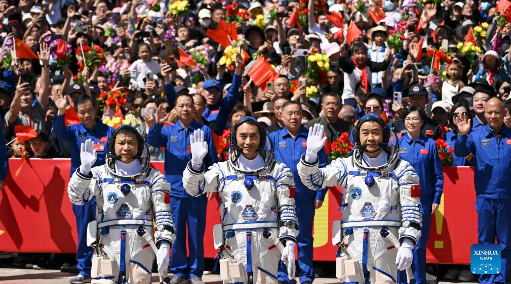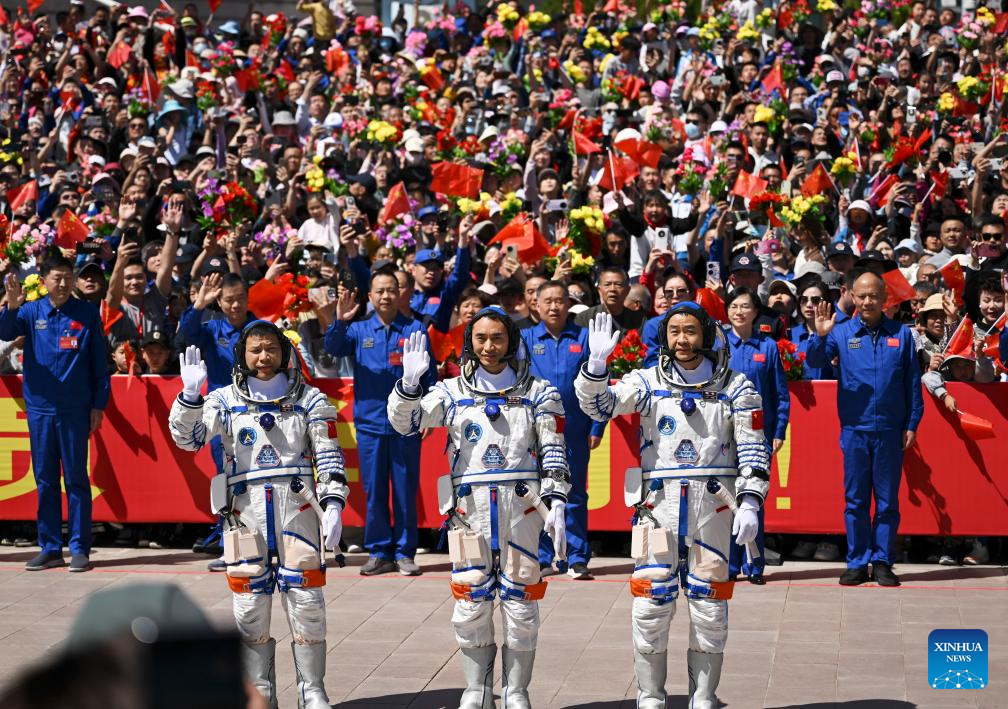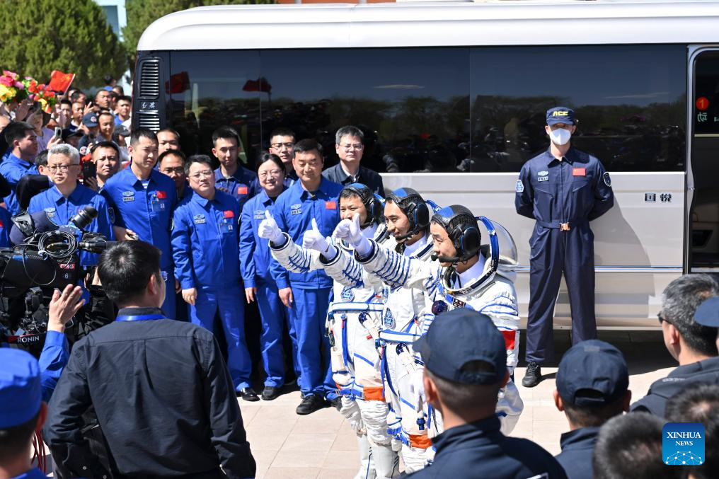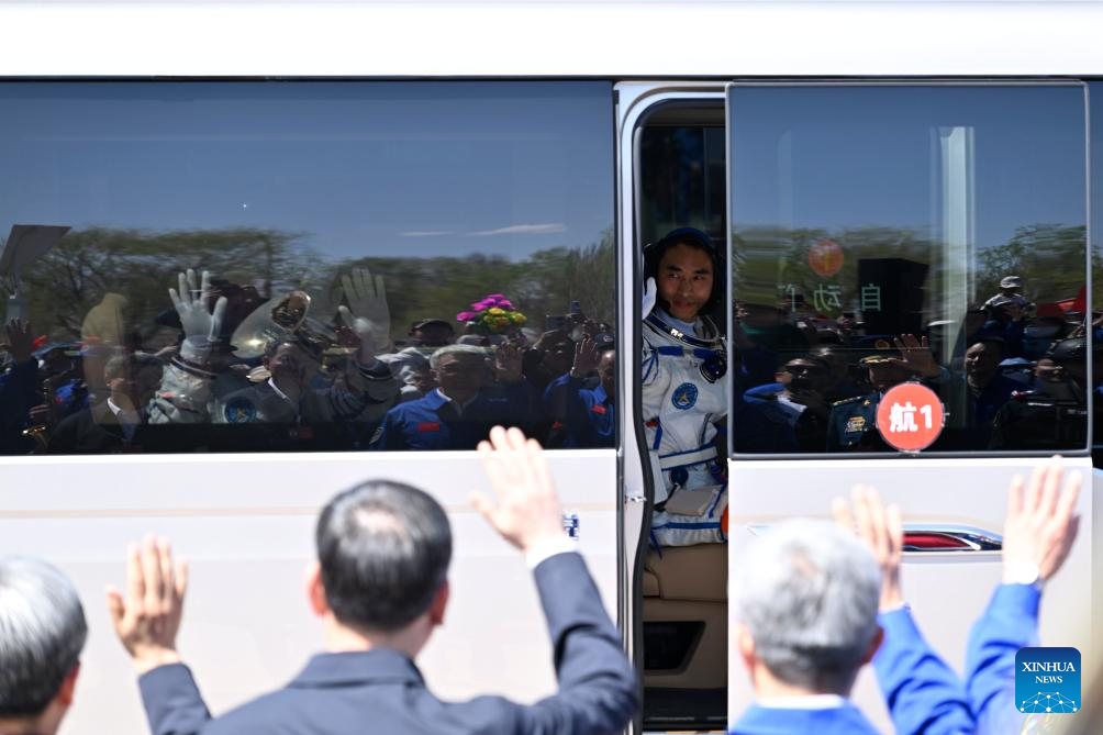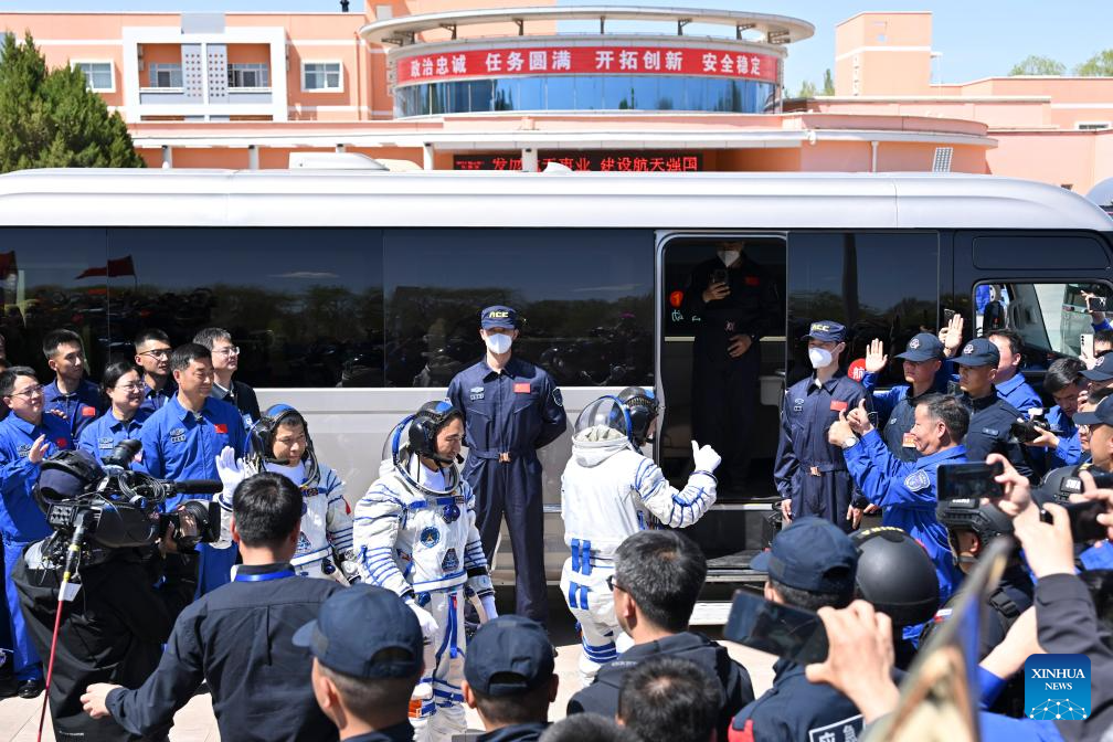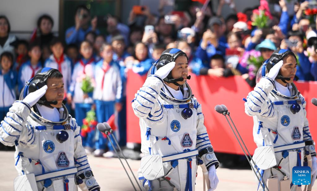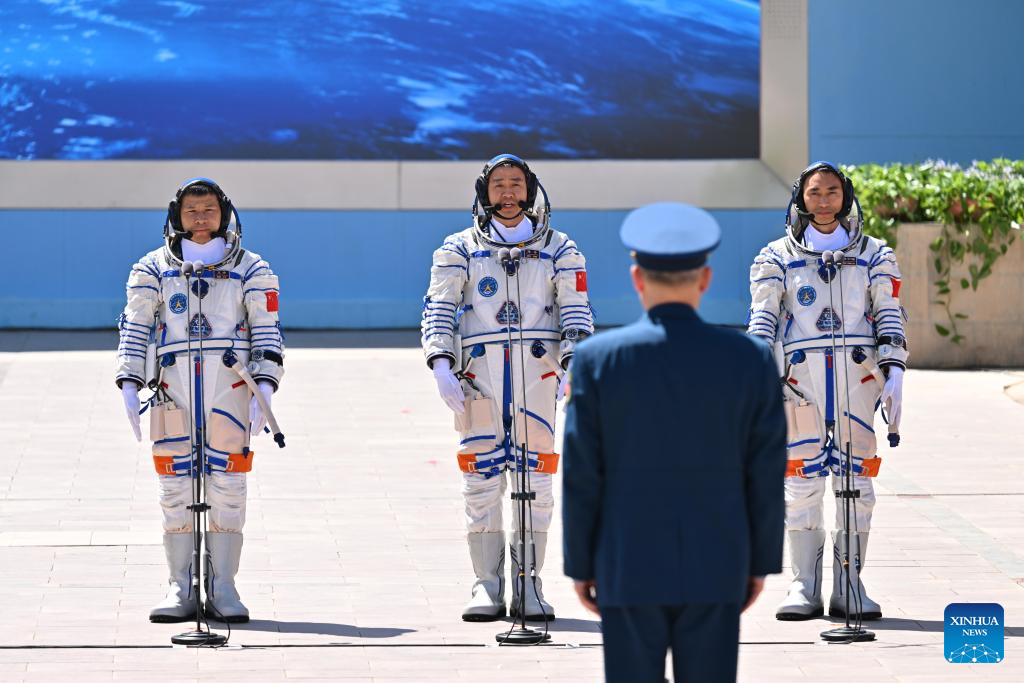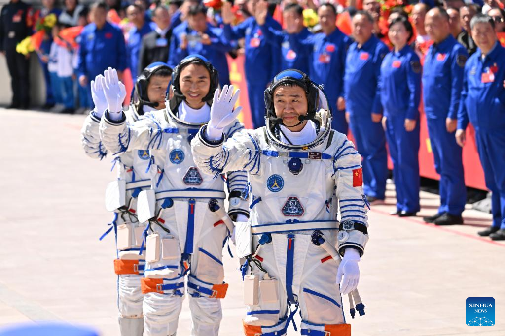 JIUQUAN, 24 abr (Xinhua) -- Una ceremonia de despedida para los tres astronautas de la misión espacial tripulada Shenzhou-20 se llevó a cabo hoy jueves en el Centro de Lanzamiento de Satélites de Jiuquan, en el noroeste de China, informó la Agencia de Vuelos Espaciales Tripulados de China.