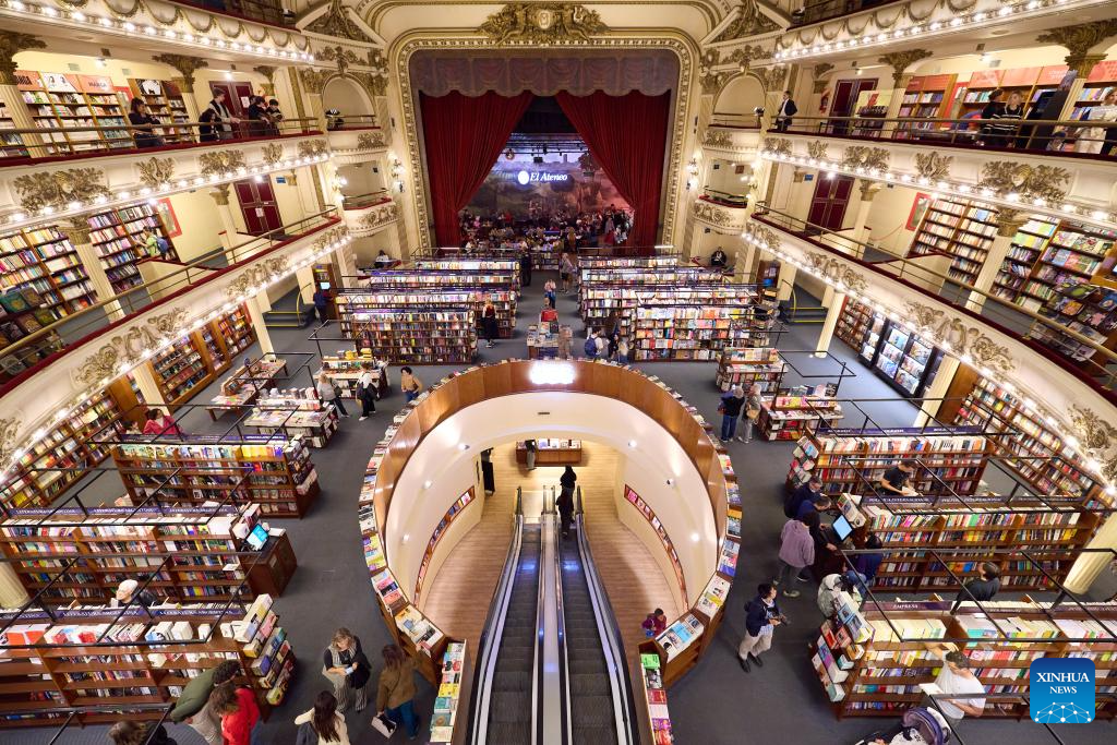 BUENOS AIRES, 23 abril, 2025 (Xinhua) -- Imagen del 21 de abril de 2025 del interior de la librería El Ateneo Gran Splendid, en la ciudad de Buenos Aires, capital de Argentina. El Ateneo Gran Splendid es una librería de fama mundial ubicada en Buenos Aires. Solía ser un teatro inaugurado en 1919 como un edificio emblemático de Buenos Aires. El edificio fue renovado y convertido en librería en el año 2000. Cada año atrae a más de un millón de visitantes. (Xinhua/Zhang Duo)