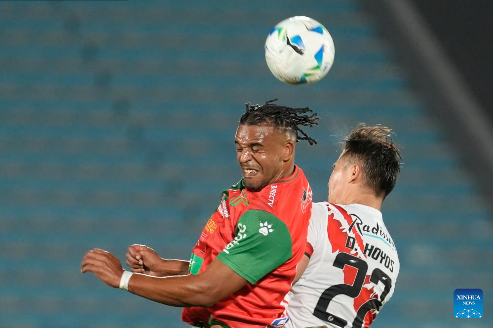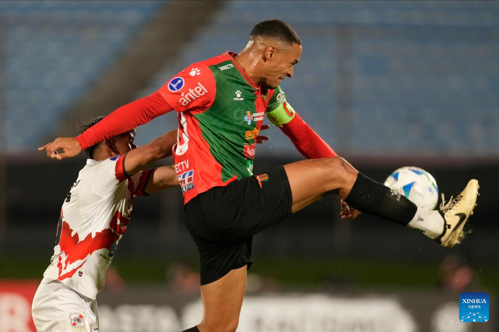 MONTEVIDEO, 23 abril, 2025 (Xinhua) -- Imagen del 22 de abril de 2025 del Martín González (d), de Boston River de Uruguay, disputando el balón con Andrés Torrico (i), de Nacional Potosí de Bolivia, durante un partido del grupo A de la jornada 3 de la Fase de Grupos de la Copa Conmebol Sudamericana, celebrado en el estadio Centenario, en Montevideo, capital de Uruguay. (Xinhua/Nicolás Celaya)