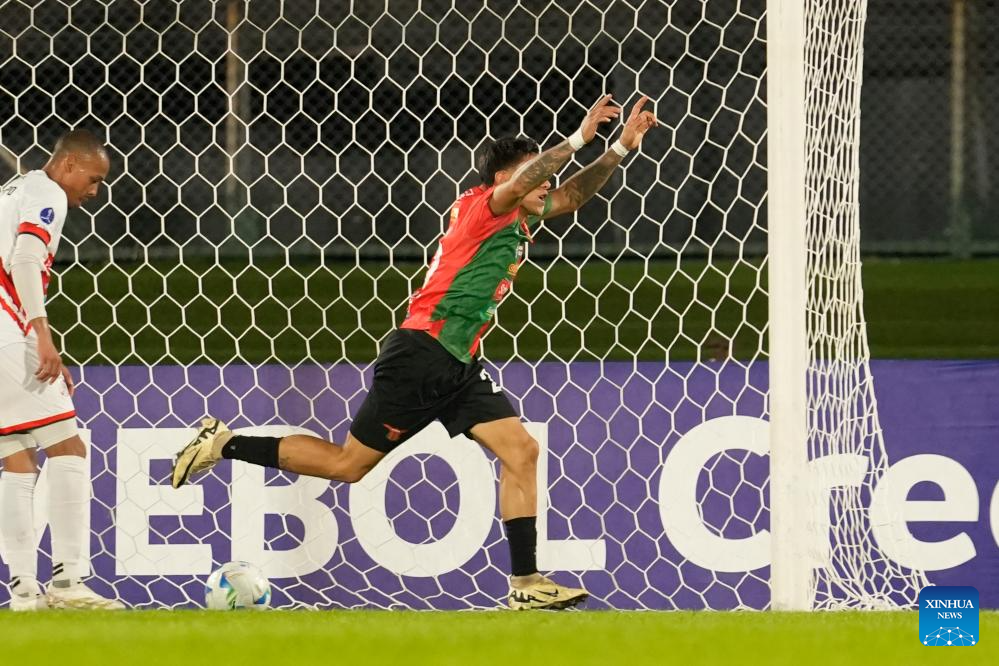 MONTEVIDEO, 23 abril, 2025 (Xinhua) -- Imagen del 22 de abril de 2025 del Fredy Martínez (d), de Boston River de Uruguay, festejando su anotación durante un partido del grupo A de la jornada 3 de la Fase de Grupos de la Copa Conmebol Sudamericana ante Nacional Potosí de Bolivia, celebrado en el estadio Centenario, en Montevideo, capital de Uruguay. (Xinhua/Nicolás Celaya)