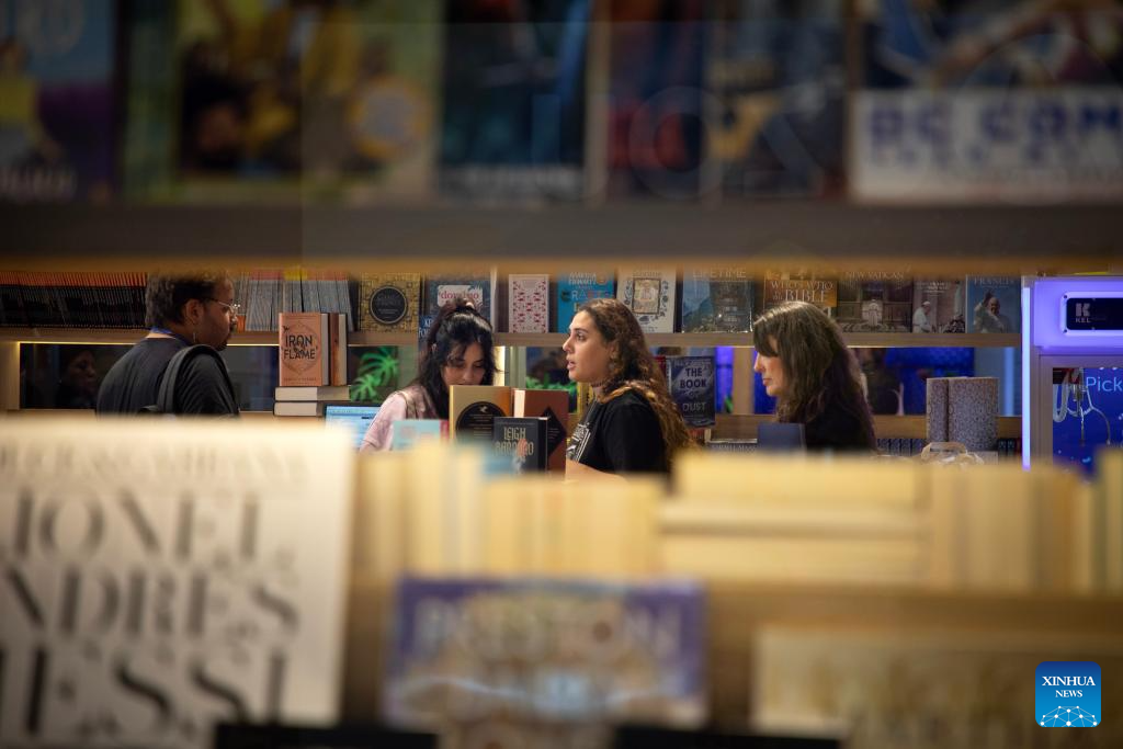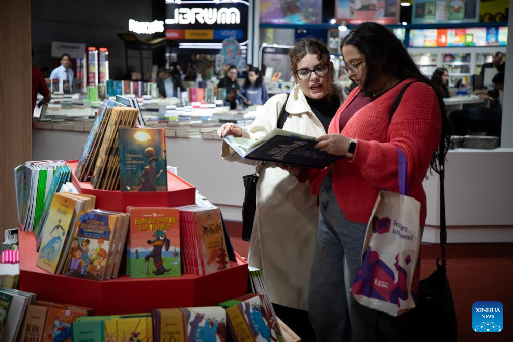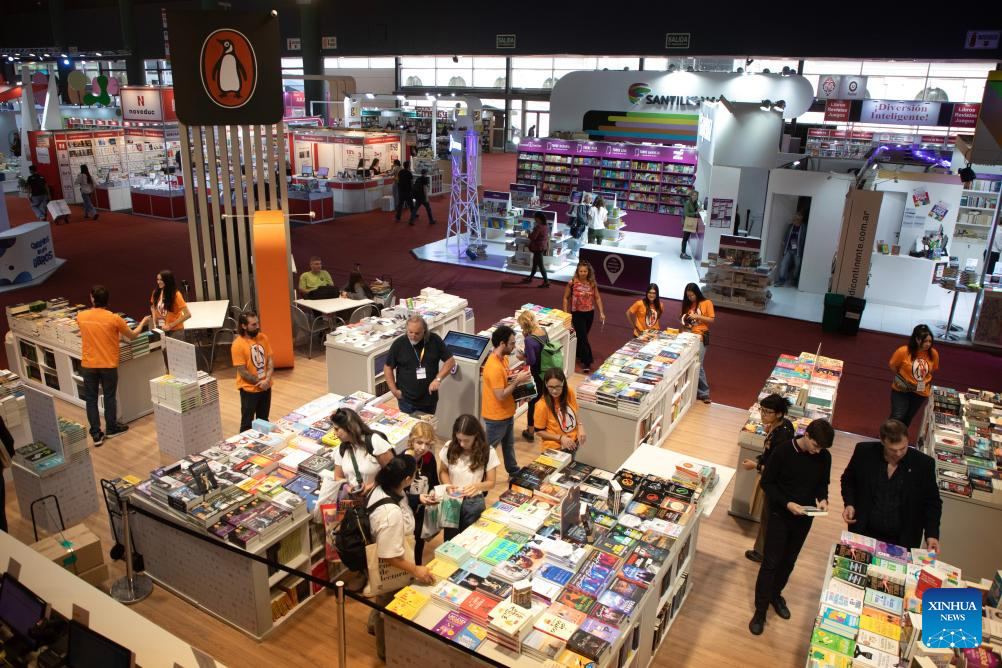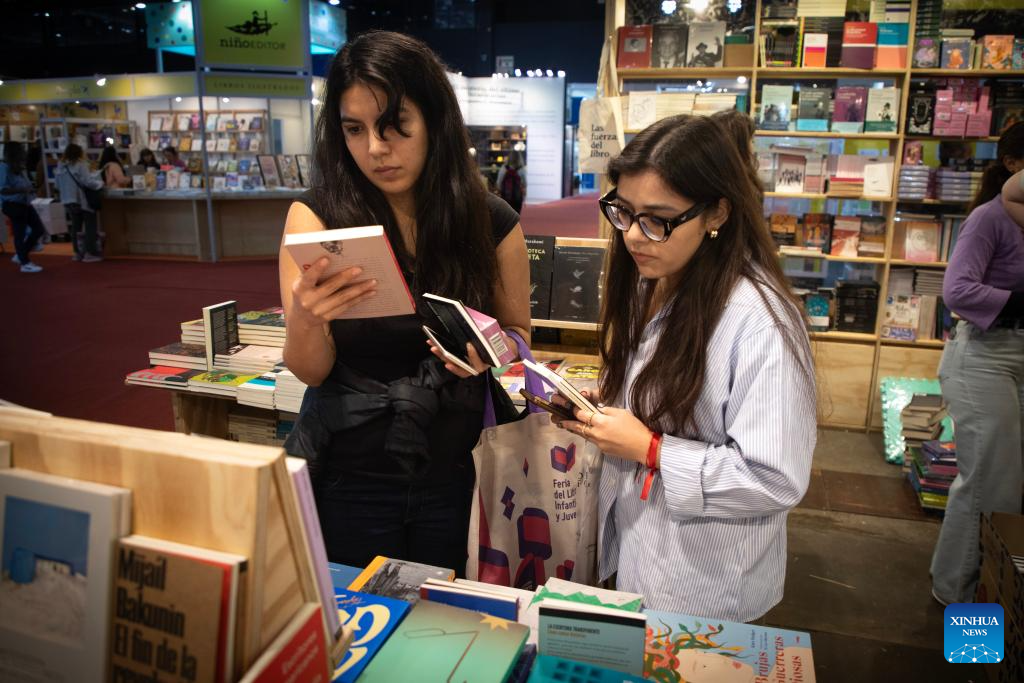 BUENOS AIRES, 24 abril, 2025 (Xinhua) -- Personas observan libros exhibidos en un estand durante la 49 edición de la Feria Internacional del Libro de Buenos Aires, en el predio ferial La Rural, en la ciudad de Buenos Aires, capital de Argentina, el 24 de abril de 2025. (Xinhua/Martín Zabala)