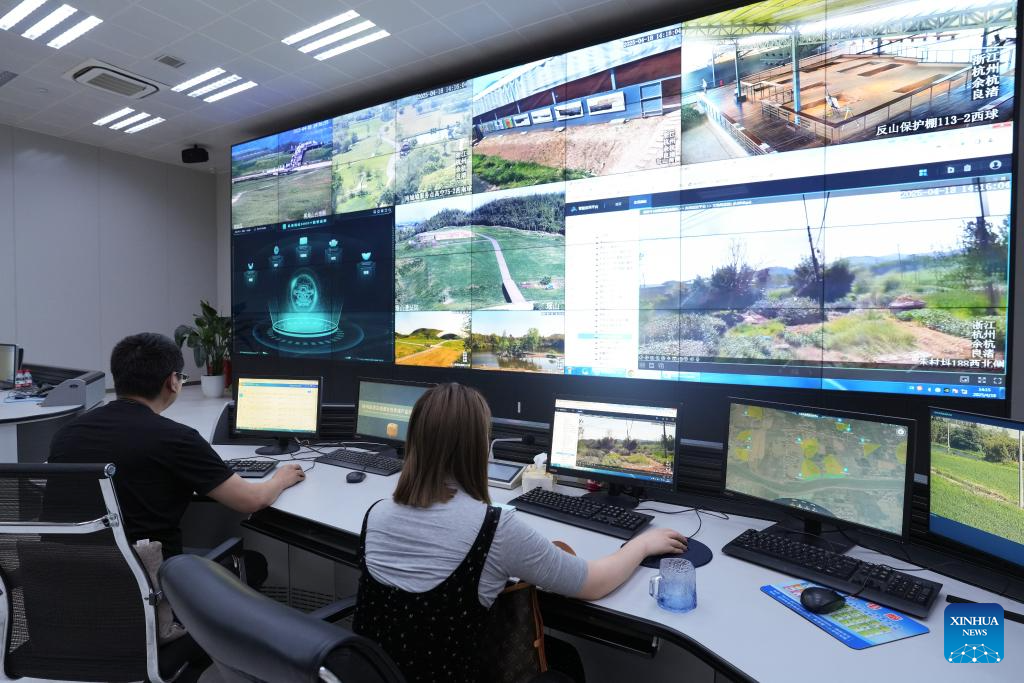 HANGZHOU, 24 abril, 2025 (Xinhua) -- Imagen del 18 de abril de 2025 de empleados monitoreando el estado en tiempo real de las Ruinas Arqueológicas de la Ciudad de Liangzhu con aplicaciones digitales e inteligentes, en Hangzhou, en la provincia de Zhejiang, en el este de China. El Tercer Foro de Alto Nivel de la UNESCO para los Museos está programado del 23 al 25 de abril en Hangzhou, y reunirá a expertos de más de 60 países y regiones para debatir la experiencia y las prácticas de cómo los museos desempeñan un papel en la protección del patrimonio cultural y el uso de las nuevas tecnologías. (Xinhua/Weng Xinyang)