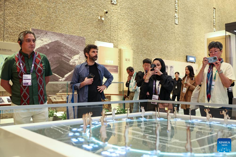 HANGZHOU, 24 abril, 2025 (Xinhua) -- Imagen del 23 de abril de 2025 de invitados que asisten al Tercer Foro de Alto Nivel de la UNESCO para los Museos visitando el Museo de Liangzhu, en Hangzhou, en la provincia de Zhejiang, en el este de China. El Tercer Foro de Alto Nivel de la UNESCO para los Museos está programado del 23 al 25 de abril en Hangzhou, y reunirá a expertos de más de 60 países y regiones para debatir la experiencia y las prácticas de cómo los museos desempeñan un papel en la protección del patrimonio cultural y el uso de las nuevas tecnologías. (Xinhua/Jiang Han)