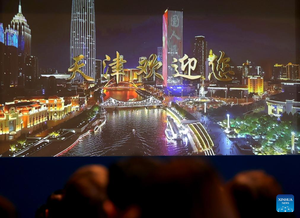 LONDRES, 24 abril, 2025 (Xinhua) -- Personas observan un video promocional de la ciudad portuaria de Tianjin, en el norte de China, en un evento de promoción de inversión y negocios para Tianjin, celebrado en Londres, Reino Unido, el 24 de abril de 2025. El jueves se celebró en el centro de Londres un evento de promoción de inversión y negocios para la ciudad portuaria de Tianjin, en el norte de China, con una entusiasta participación de actores tanto chinos como británicos. (Xinhua/Li Ying)
