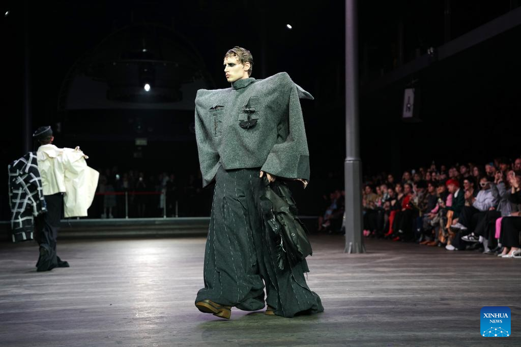 PRAGA, 25 abril, 2025 (Xinhua) -- Un modelo presenta una creación de Sofia Blahutova durante la edición de primavera de la Semana de la Moda Mercedes-Benz de Praga, en Praga, República Checa, el 25 de abril de 2025. (Xinhua/Dana Kesnerova)