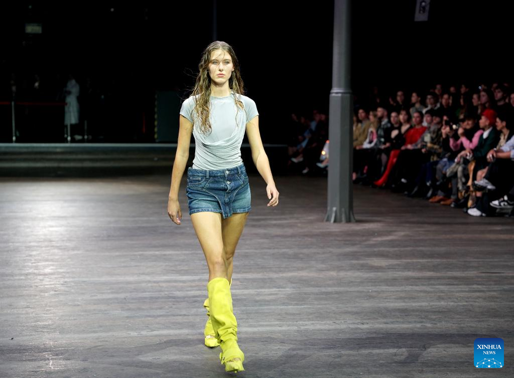 PRAGA, 25 abril, 2025 (Xinhua) -- Una modelo presenta una creación de ALEJANDRE durante la edición de primavera de la Semana de la Moda Mercedes-Benz de Praga, en Praga, República Checa, el 25 de abril de 2025. (Xinhua/Dana Kesnerova)