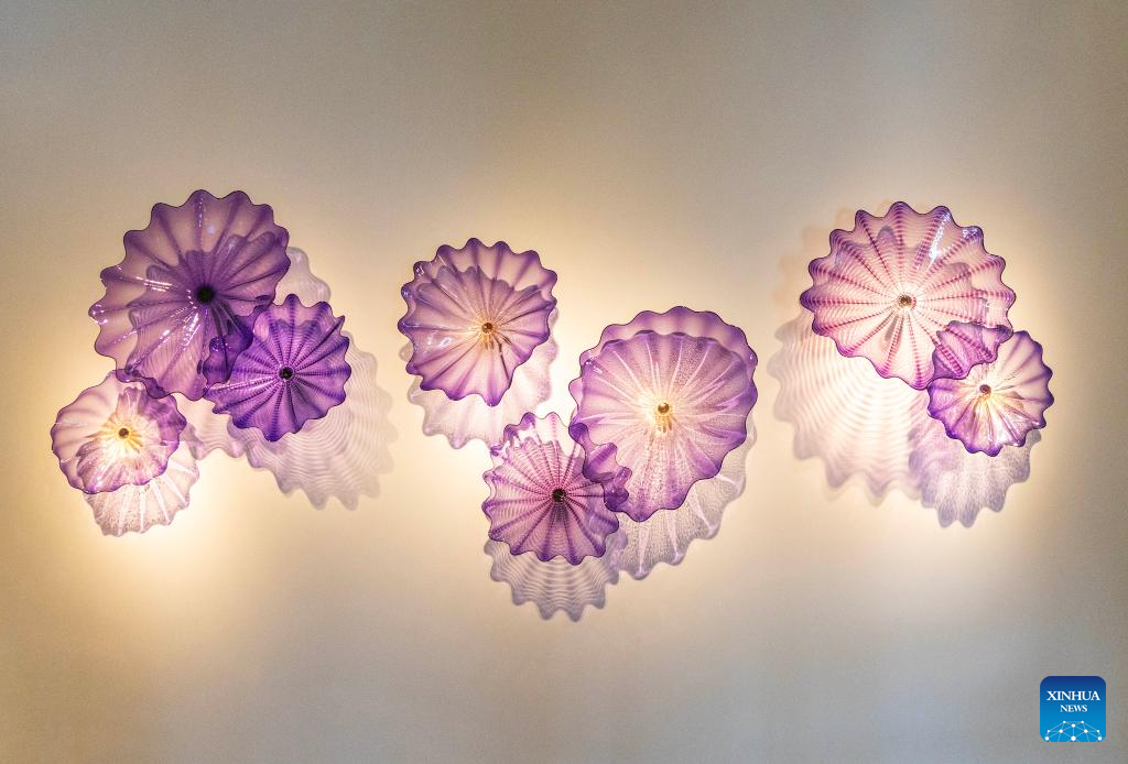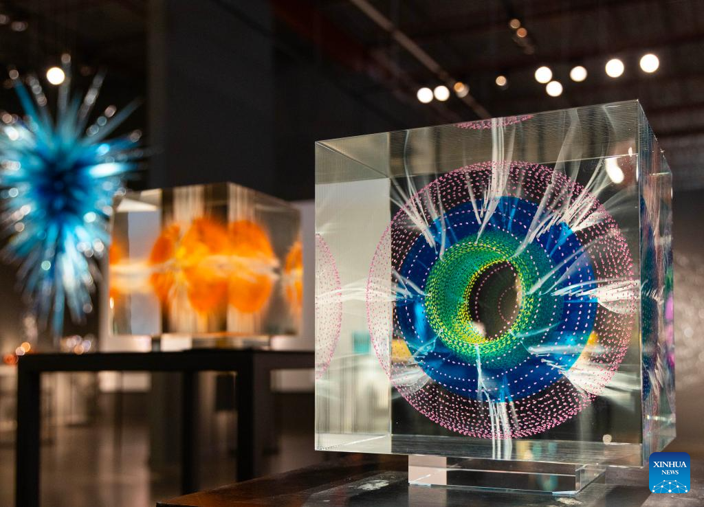 TORONTO, 25 abril, 2025 (Xinhua) -- Imagen del 24 de abril de 2025 de una obra de arte en vidrio vista en la Galería Sandra Ainsley, en Toronto, Canadá. Como una de las principales galerías contemporáneas de vidrio de Norteamérica, la Galería Sandra Ainsley exhibe obras de arte en vidrio de más de 60 artistas de todo el mundo. (Xinhua/Zou Zheng)