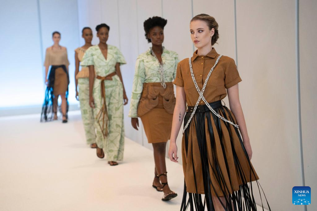 JOHANNESBURGO, 26 abril, 2025 (Xinhua) -- Imagen del 25 de abril de 2025 de modelos presentando creaciones durante la Semana de la Moda Sudafricana Primavera/Verano 2025, en Johannesburgo, Sudáfrica. (Xinhua/Ihsaan Haffejee)