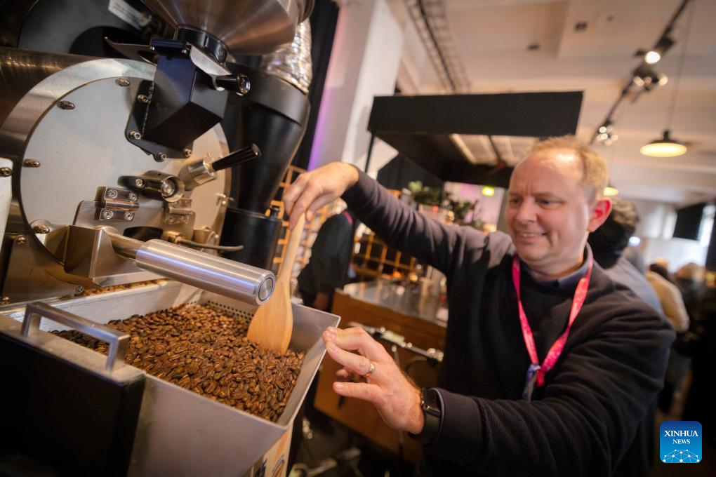 HELSINKI, 27 abril, 2025 (Xinhua) -- Imagen del 26 de abril de 2025 de un expositor tostando granos de café durante el Festival del Café de Helsinki 2025, en Helsinki, Finlandia. El Festival del Café de Helsinki 2025 se celebra aquí del 25 al 27 de abril, con unos 60 expositores que muestran sus productos de café, bebidas de té, aparatos de café y una variedad de productos. (Xinhua/Matti Matikainen)