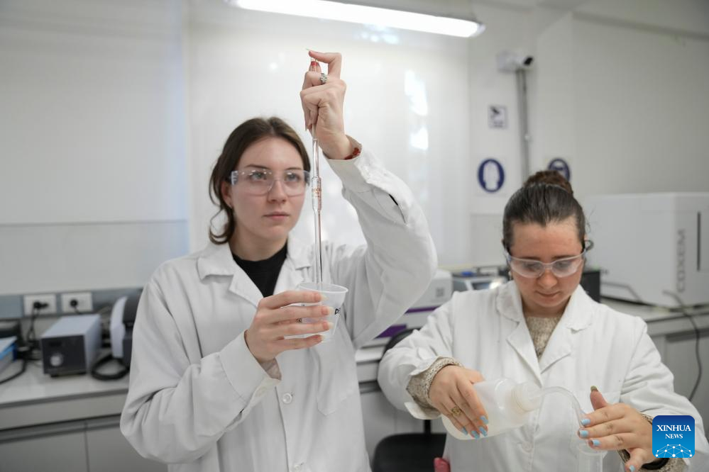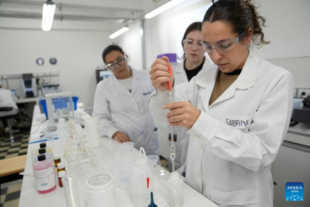 Imagen del 24 de abril de 2025 de estudiantes de química participando en una clase en el Laboratorio Conjunto entre Uruguay y China de bio-nano-farma de la Facultad de Química de la Universidad de la República, en Montevideo, capital de Uruguay. Científicos uruguayos y chinos llevan a cabo varios proyectos de investigación conjuntos en el campo interdisciplinario de la bio-nano-farma, en la búsqueda de avances en tratamientos contra el cáncer pancreático y las heridas causadas por la diabetes. (Xinhua/Nicolás Celaya)