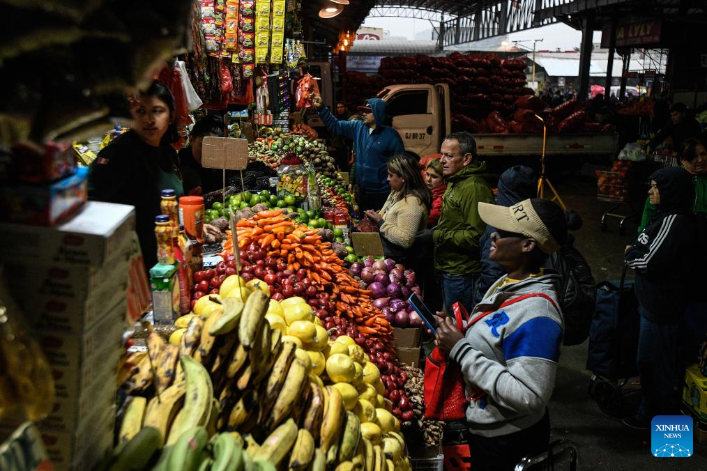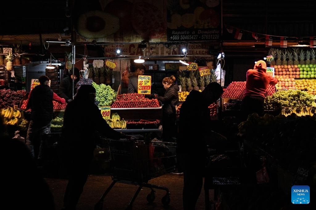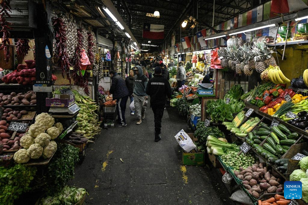 Personas realizan compras en el mercado La Vega Central, en Santiago, capital de Chile, el 30 de abril de 2025. El Consejo del Banco Central de Chile decidió el martes, en su reunión mensual, mantener la tasa de interés de política monetaria en 5 por ciento, en medio de la incertidumbre mundial por los aranceles impuestos por Estados Unidos a sus socios comerciales. (Xinhua/Jorge Villegas)
