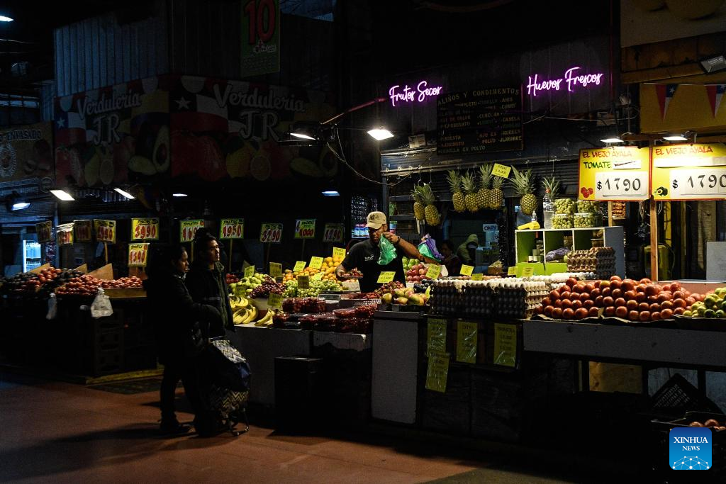 SANTIAGO, 30 abril, 2025 (Xinhua) -- Un vendedor atiende a sus clientes en el mercado La Vega Central, en Santiago, capital de Chile, el 30 de abril de 2025. El Consejo del Banco Central de Chile decidió el martes, en su reunión mensual, mantener la tasa de interés de política monetaria en 5 por ciento, en medio de la incertidumbre mundial por los aranceles impuestos por Estados Unidos a sus socios comerciales. (Xinhua/Jorge Villegas)