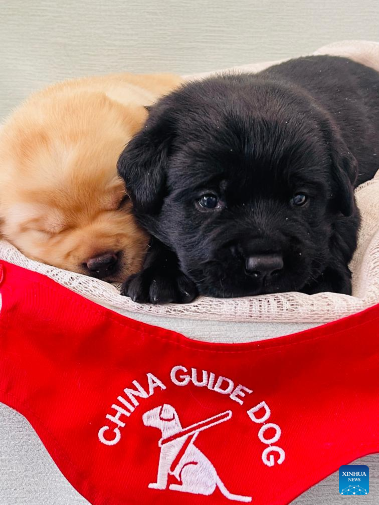 DALIAN, 30 abril, 2025 (Xinhua) -- Imagen del 5 de abril de 2025 de cachorros de perro guía en el Centro de Entrenamiento de Perros Guía de China, en Dalian, en la provincia de Liaoning, en el noreste de China. Ya sea recorriendo las calles bulliciosas, abriéndose paso en el abarrotado metro o paseando por los tranquilos parques de Beijing, Wang Zhihua siempre va acompañado de un labrador con un chaleco rojo brillante. El Día Internacional del Perro Guía se celebra el último miércoles de abril de cada año, en homenaje al papel fundamental que desempeñan los perros guía en el apoyo a la independencia y la movilidad de las personas con discapacidad visual. (Xinhua/Centro de Entrenamiento de Perros Guía de China)
