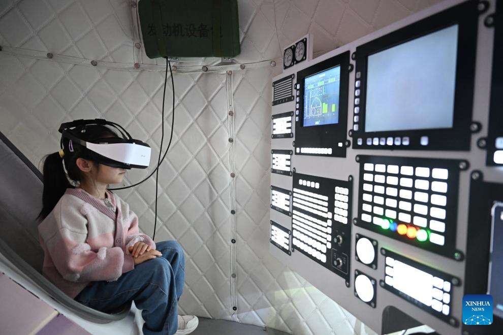 HEBI, 30 abril, 2025 (Xinhua) -- Imagen del 21 de abril de 2025 de una niña visitando un modelo de cápsula de retorno en una base de divulgación científica aeroespacial en un parque industrial de fabricación de satélites, en Hebi, en la provincia de Henan, en el centro de China. En los últimos años, la provincia de Henan ha desarrollado activamente la industria aeroespacial comercial, fomentando un clúster integral de la industria satelital y desarrollando industrias de apoyo relacionadas. (Xinhua/Li Jianan)