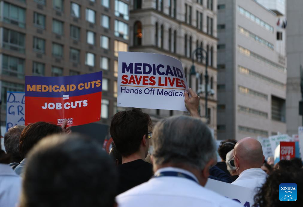 Personas de todas las edades y profesiones se unieron a la marcha. Jeffrey, un médico de Nueva York, declaró a Xinhua que "la atención sanitaria es un derecho humano. Y debe ser puesto a disposición de todo el mundo, no recortado. Literalmente, matarán a gente con los recortes que planean".