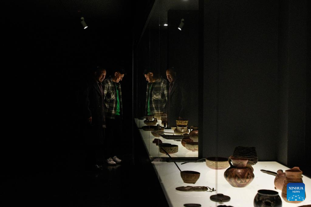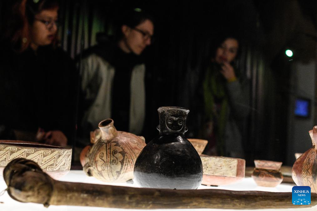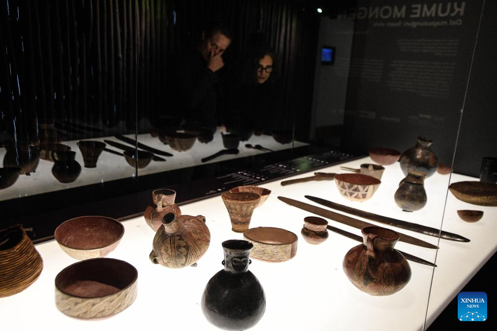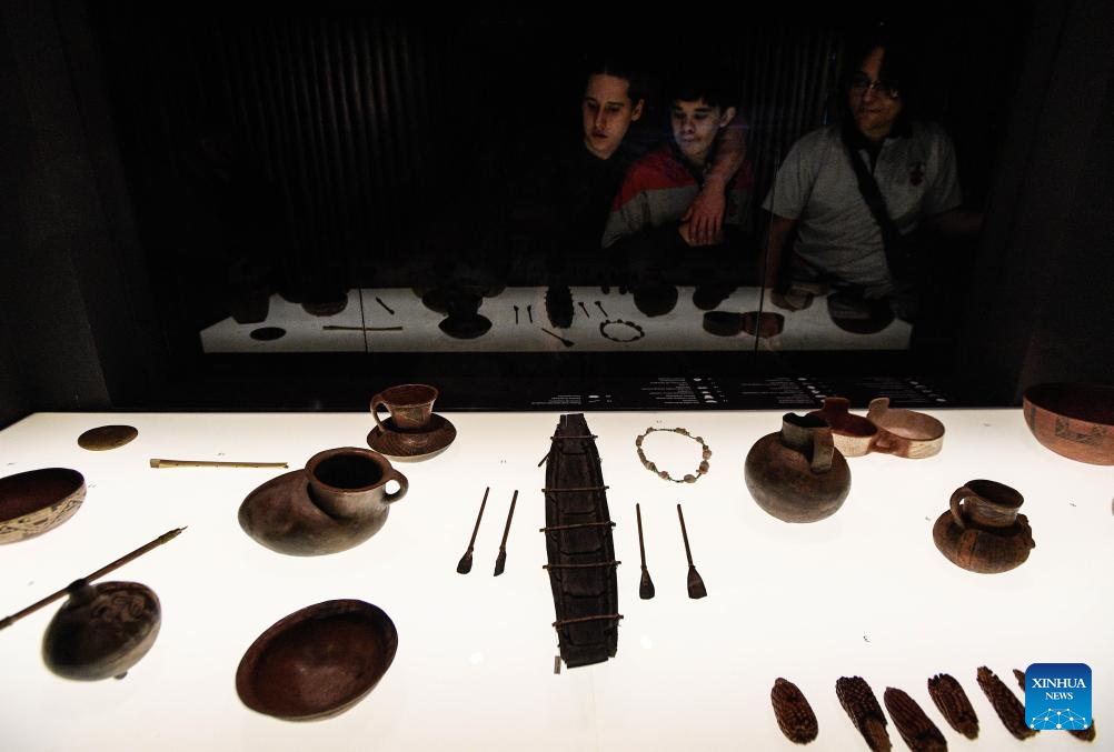 SANTIAGO, 1 mayo, 2025 (Xinhua) -- Imagen del 30 de abril de 2025 de personas visitando la exposición "Kume Mongen" en el Museo de Artes Visuales de la Universidad Católica (MAVI UC), en Santiago, capital de Chile. Un viaje a través de piezas arqueológicas para comprender el concepto de "buen vivir" del pueblo originario chileno mapuche presenta la exposición artística "Kume Mongen" que arrancó el miércoles en el MAVI UC en la capital chilena. (Xinhua/Jorge Villegas)