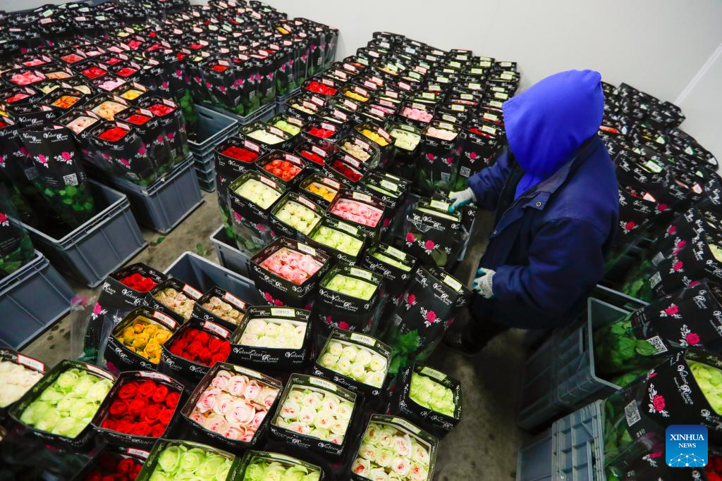 TABACUNDO, 4 mayo, 2025 (Xinhua) -- Imagen del 3 de mayo de 2025 de rosas para exportación acomodadas en paquetes, en la ciudad de Tabacundo, en el norte de Ecuador. (Xinhua/Ricardo Landeta)