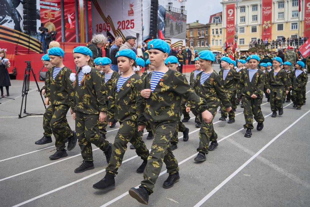 VLADIVOSTOK, 4 mayo, 2025 (Xinhua) -- Una formación de estudiantes de una escuela primaria participa en un desfile de "Los bisnietos de la Victoria" para celebrar el 80 aniversario de la Victoria en la Gran Guerra Patriótica, en Vladivostok, Rusia, el 4 de mayo de 2025. (Xinhua/Guo Feizhou)