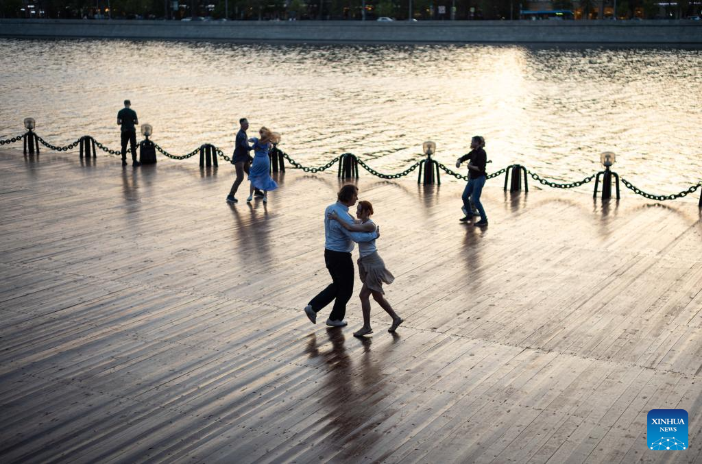 MOSCU, 5 mayo, 2025 (Xinhua) -- Imagen del 22 de abril de 2025 de personas bailando en el parque Gorki, en Moscú, Rusia. (Xinhua/Bai Xueqi)