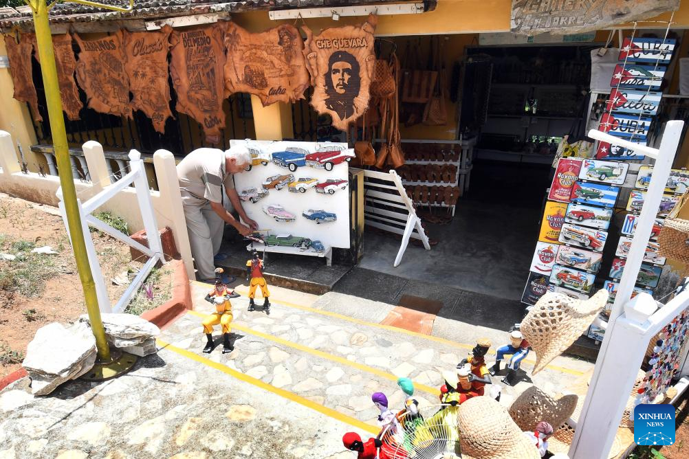 SANCTI SPIRITUS, 10 mayo, 2025 (Xinhua) -- Imagen del 6 de mayo de 2025 de un hombre esperando por clientes en una tienda de artesanías, en el municipio de Trinidad, en la provincia de Sancti Spíritus, Cuba. El Gobierno cubano busca reflotar a la industria turística, otrora "locomotora" de la economía nacional ahora en descenso y golpeada por la crisis internacional y el recrudecimiento del bloqueo que Estados Unidos aplica a Cuba desde hace más de 60 años. (Xinhua/Joaquín Hernández)