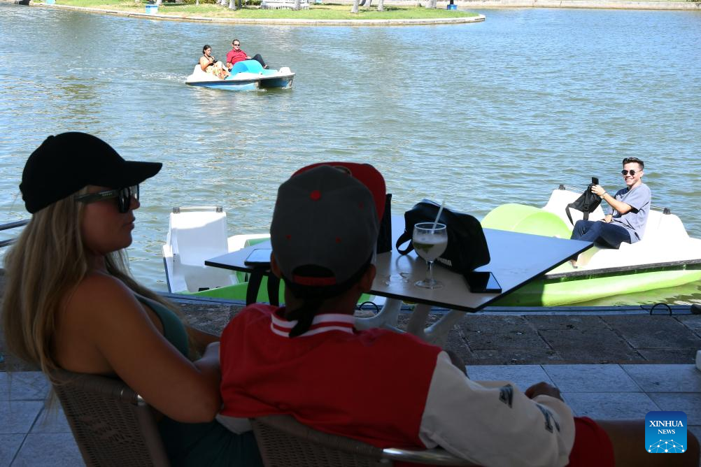 MATANZAS, 10 mayo, 2025 (Xinhua) -- Imagen del 7 de mayo de 2025 de turistas disfrutando su tiempo libre en una instalación turística, en Varadero, en la provincia de Matanzas, Cuba. El Gobierno cubano busca reflotar a la industria turística, otrora "locomotora" de la economía nacional ahora en descenso y golpeada por la crisis internacional y el recrudecimiento del bloqueo que Estados Unidos aplica a Cuba desde hace más de 60 años. (Xinhua/Joaquín Hernández)