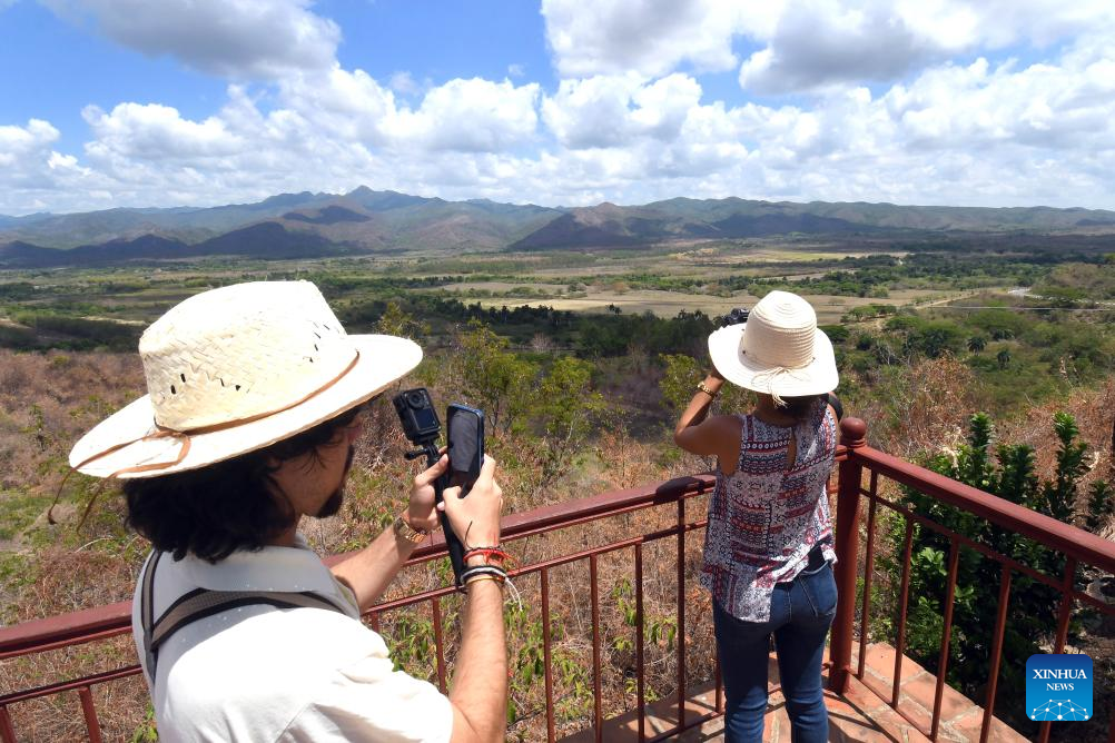 SANCTI SPIRITUS, 10 mayo, 2025 (Xinhua) -- Imagen del 6 de mayo de 2025 de turistas tomando fotografías del paisaje en el Valle de los Ingenios, en la provincia de Sancti Spíritus, Cuba. El Gobierno cubano busca reflotar a la industria turística, otrora "locomotora" de la economía nacional ahora en descenso y golpeada por la crisis internacional y el recrudecimiento del bloqueo que Estados Unidos aplica a Cuba desde hace más de 60 años. (Xinhua/Joaquín Hernández)