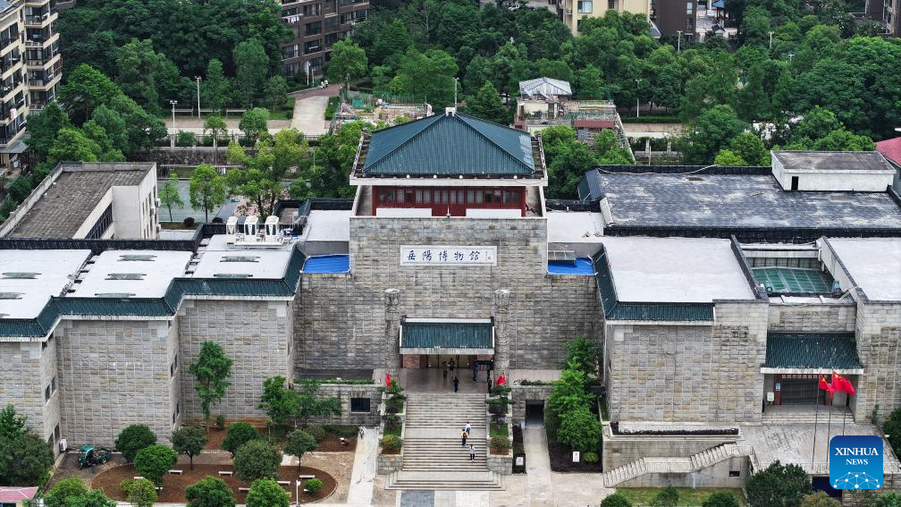 YUEYANG, 10 mayo, 2025 (Xinhua) -- Vista aérea tomada con un dron el 10 de mayo de 2025 del exterior del Museo de Yueyang, en la ciudad de Yueyang, en la provincia de Hunan, en el centro de China. El Museo Yueyang reabrió al público el sábado después de un cierre temporal por renovación de la disposición del espacio y el área de exposición en el museo desde el 19 de febrero de 2025. (Xinhua/Chen Zhenhai)