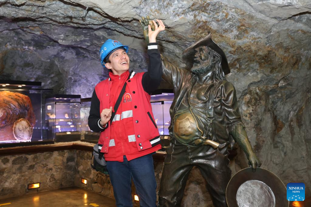 ZACATECAS, 10 mayo, 2025 (Xinhua) -- Imagen del 7 de mayo de 2025 de un guía turístico realizando una presentación para los turistas en la Mina El Edén, en Zacatecas, en el estado de Zacatecas, México. Alguna vez una importante región minera de plata en América Latina, Zacatecas había impulsado la prosperidad histórica de la ciudad con su riqueza mineral. A medida que los recursos se agotaban, la ciudad cambió su enfoque hacia la cultura y el turismo preservando su rica arquitectura colonial y su patrimonio minero, incluido el centro histórico de la ciudad, reconocido como Sitio Patrimonio Cultural de la Humanidad por la UNESCO, y la icónica Mina El Edén, y atrayendo a numerosos turistas de todo el mundo. (Xinhua/Li Mengxin)